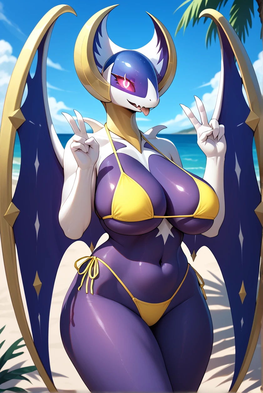 There's not really a consensus on how to anthrofy Lunala, so I'll leave this one to your discretion. I prompted for 'purple legs' and 'purple breasts' when they came out the "wrong" color
