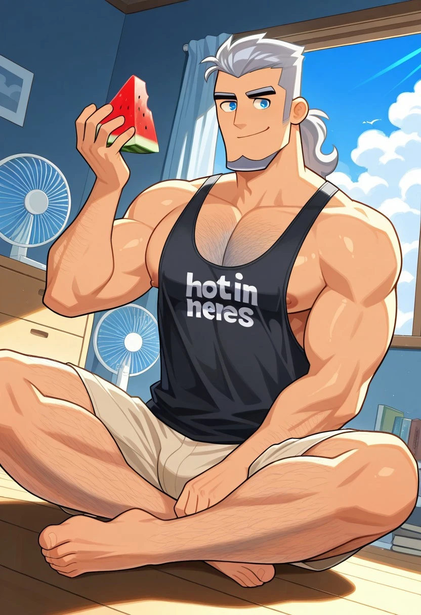 Vlad Masters: 1boy, solo, Vlad Masters, grey hair, facial hair, goatee, blue eyes, male focus