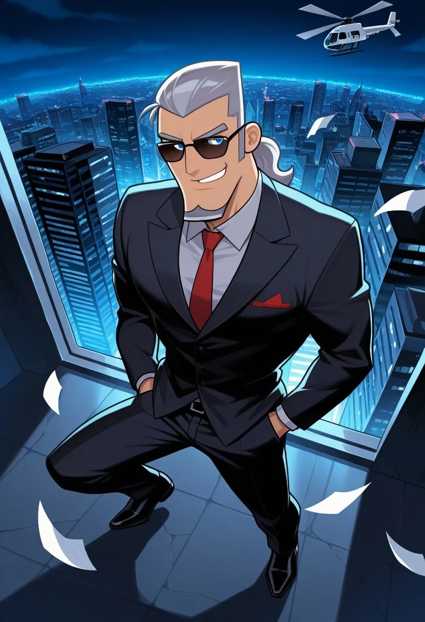 1boy, solo, Vlad Masters, grey hair, facial hair, goatee, blue eyes, male focus
