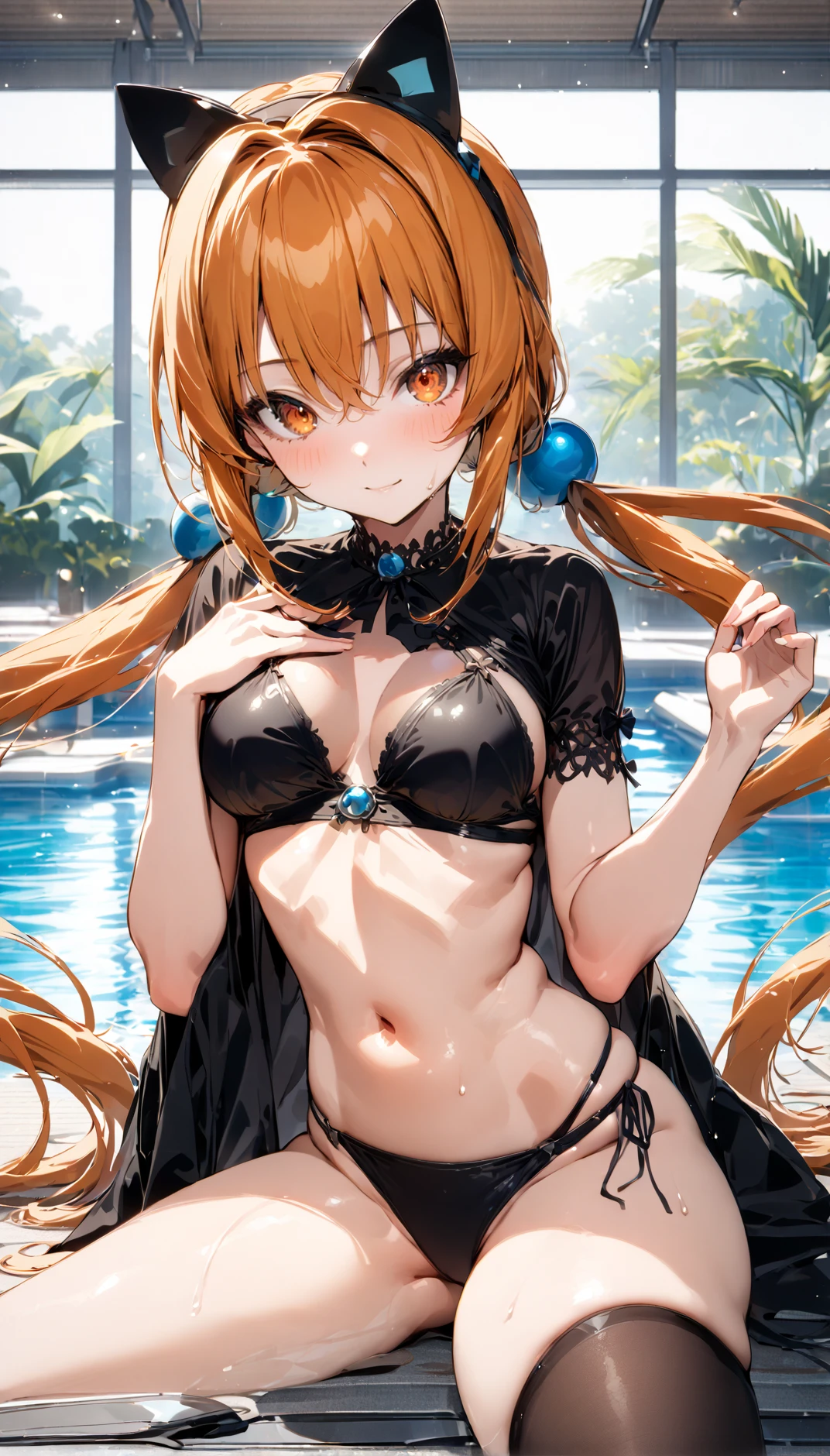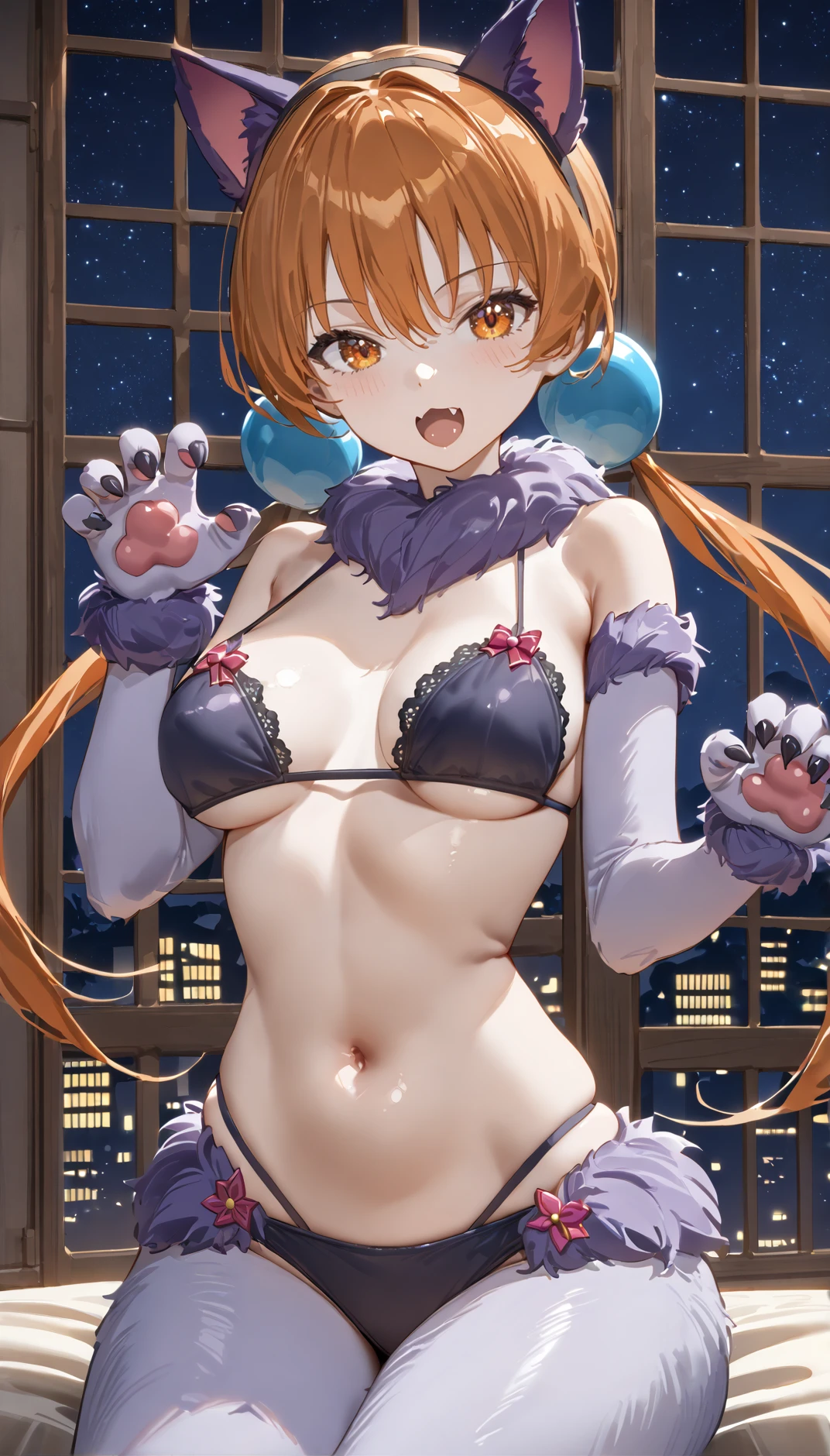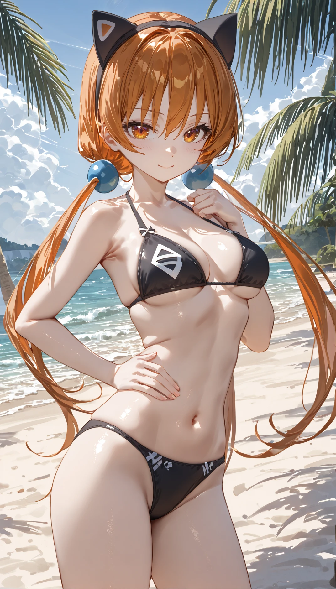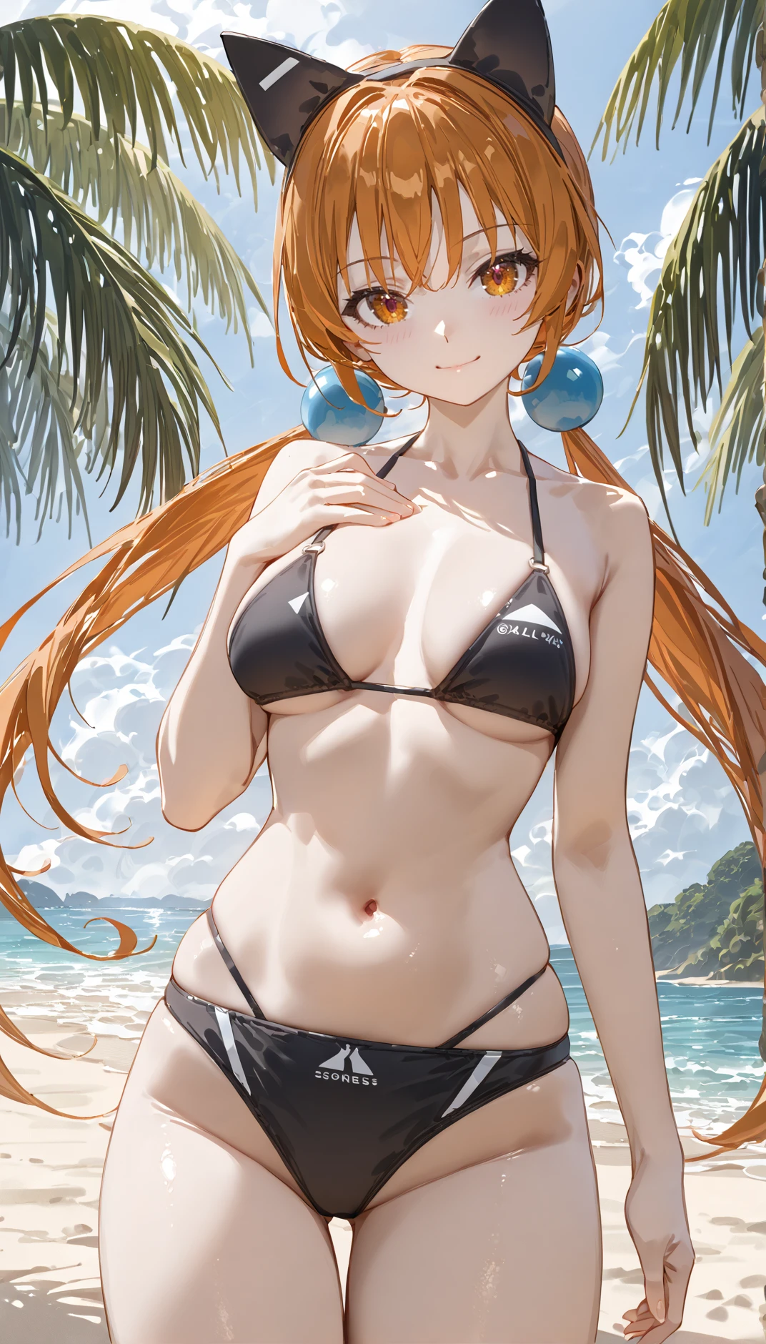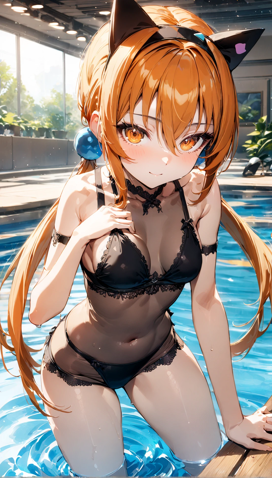 alisa southerncross, orange hair, low twintails, long hair, hair bobbles, cat ears hairband, black hairband