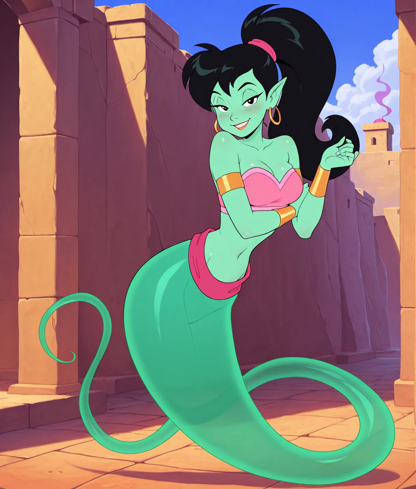 genie, smoke genie tail, long genie tail, ghost tail, transparent tail, genie belt, green tail, red belt