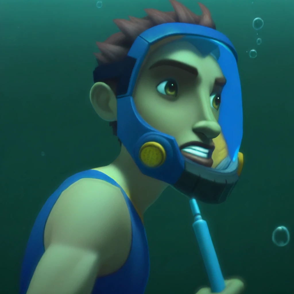 A model that is intended to generate the full-face tankless rebreather masks from the 3D animated series and comic "The Deep."