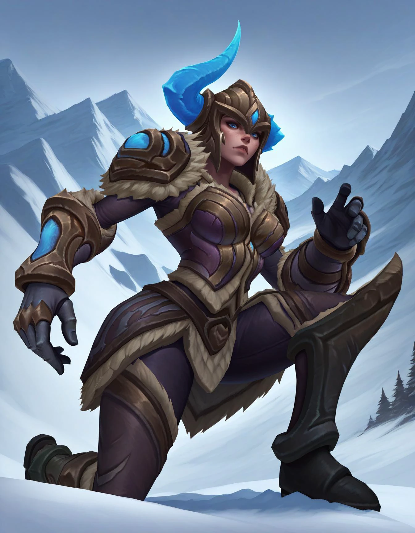 horned helmet, armor, gauntlets, greaves, fur trim