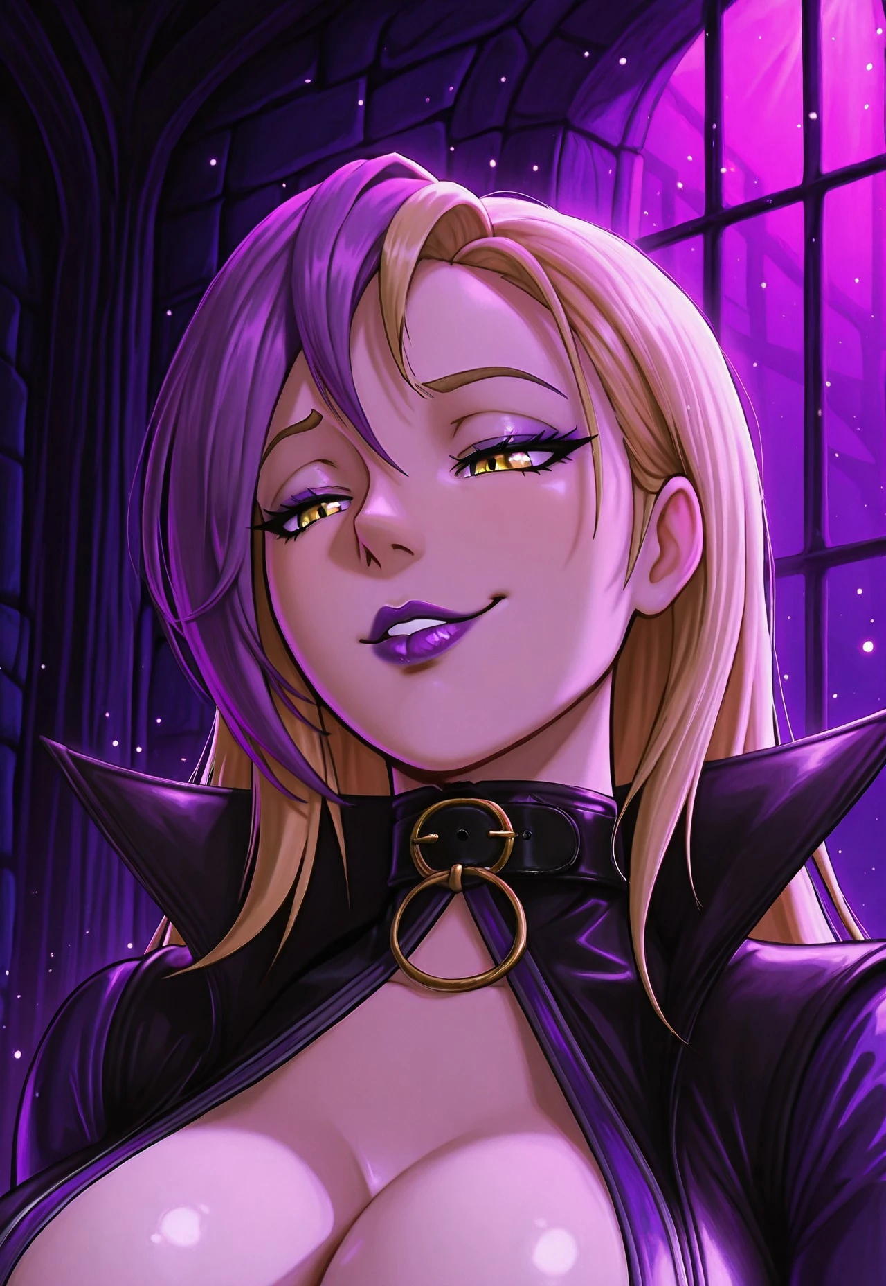 1girl, Nyxine, yellow eyes, purple eyeshadow,