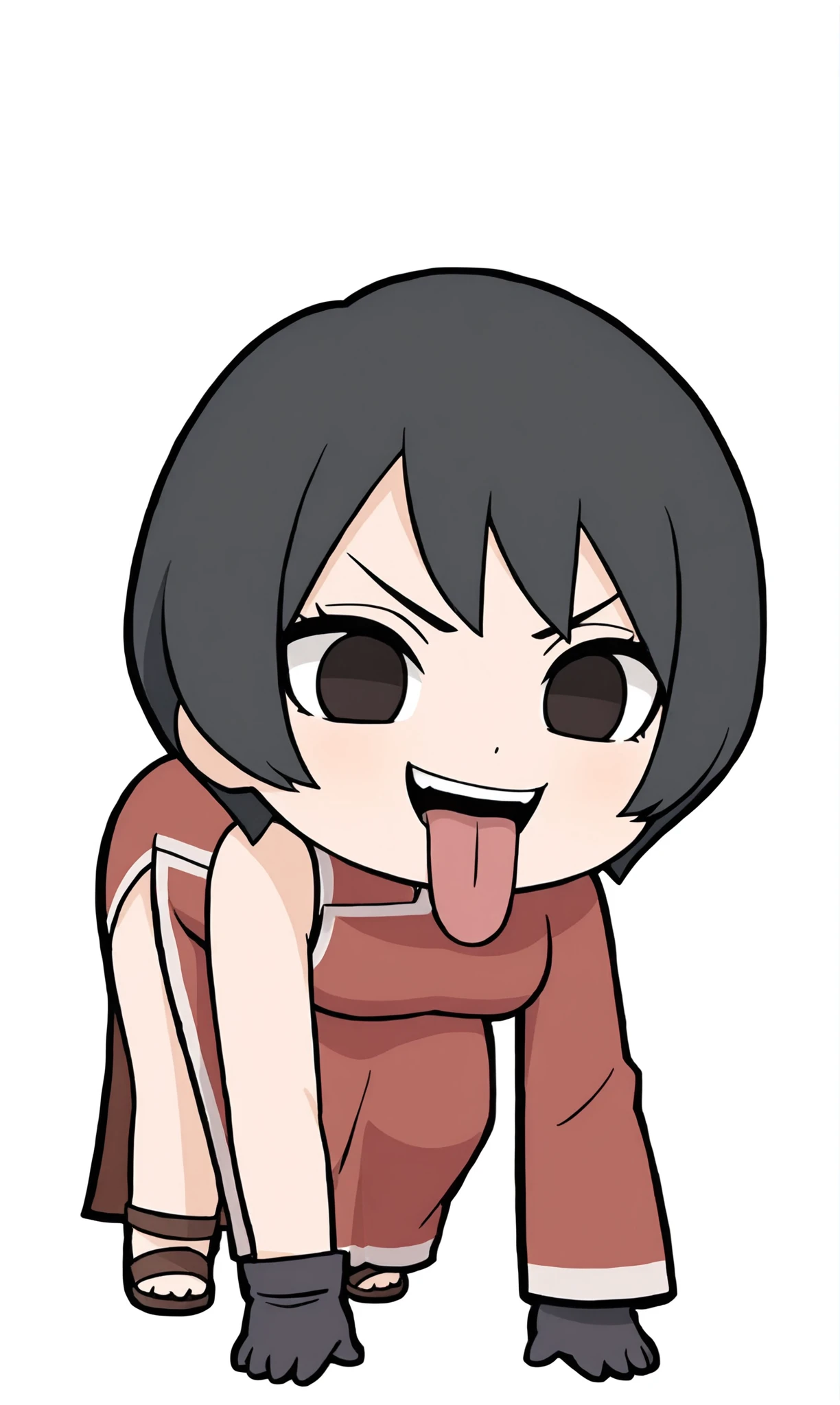 kurotsuchii, no pupils, black eyes, short hair,