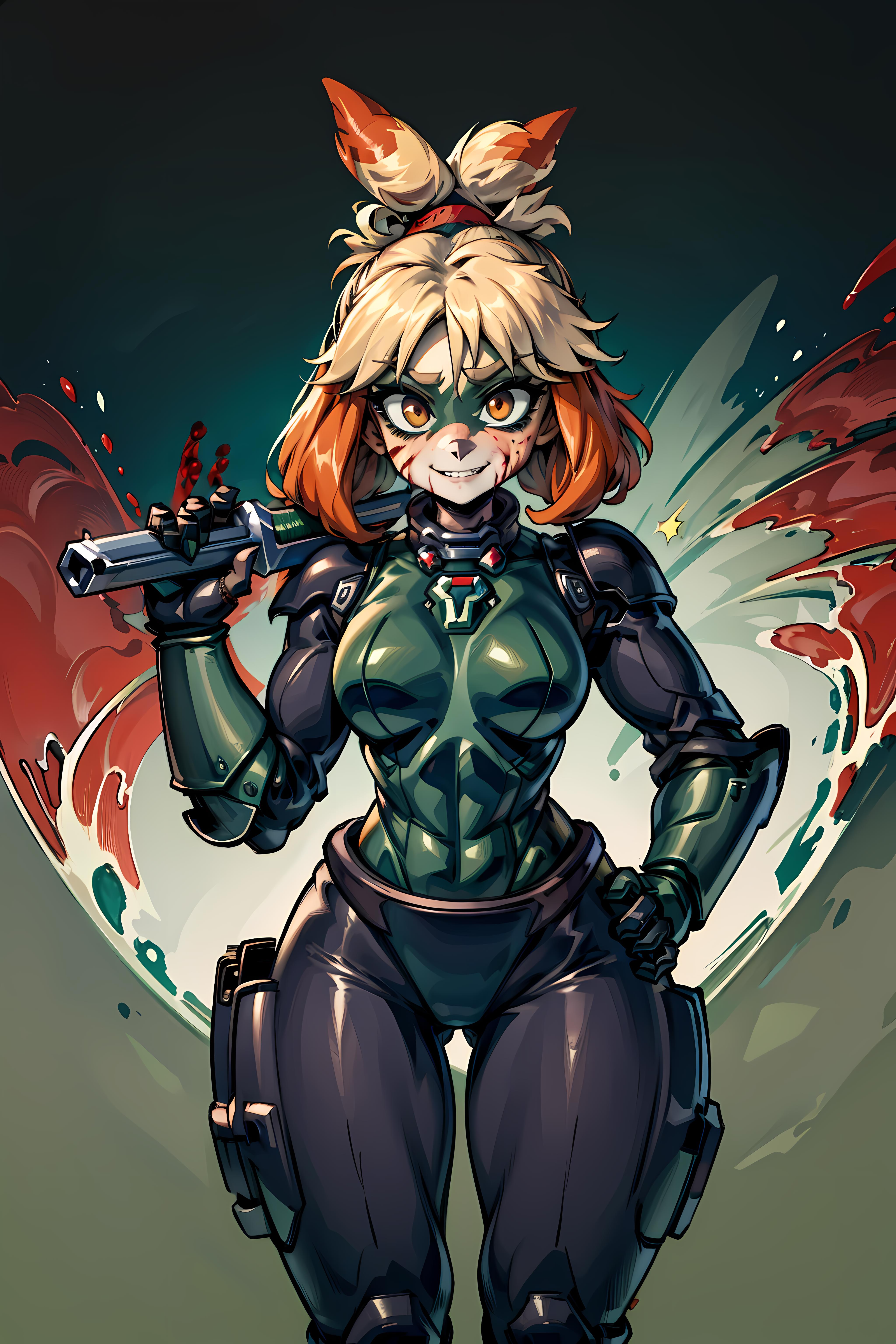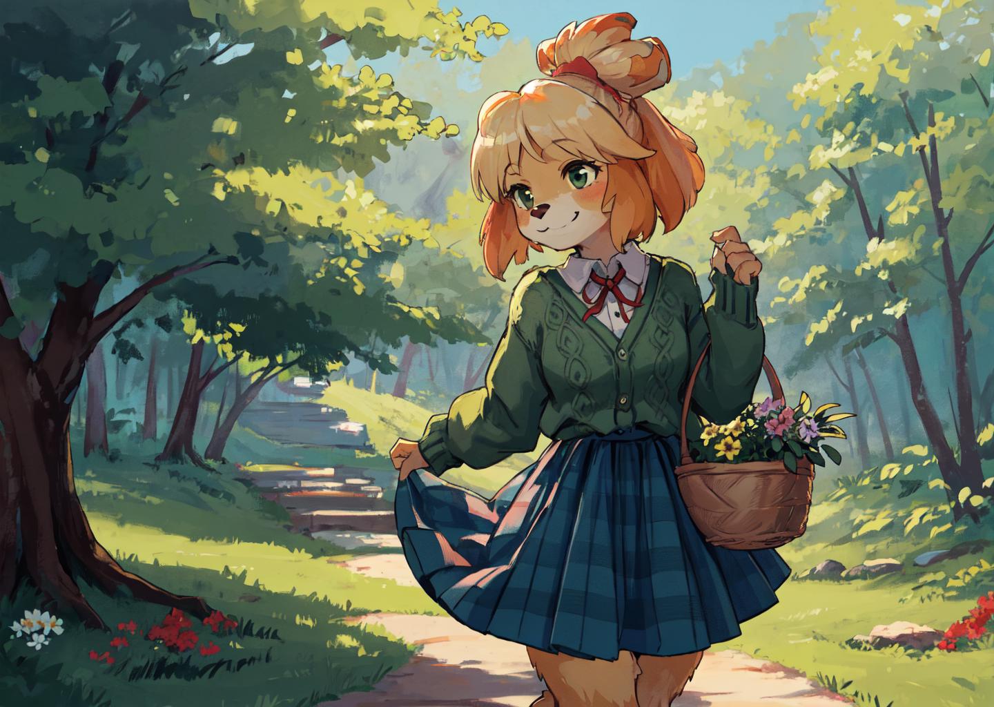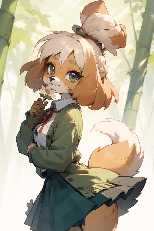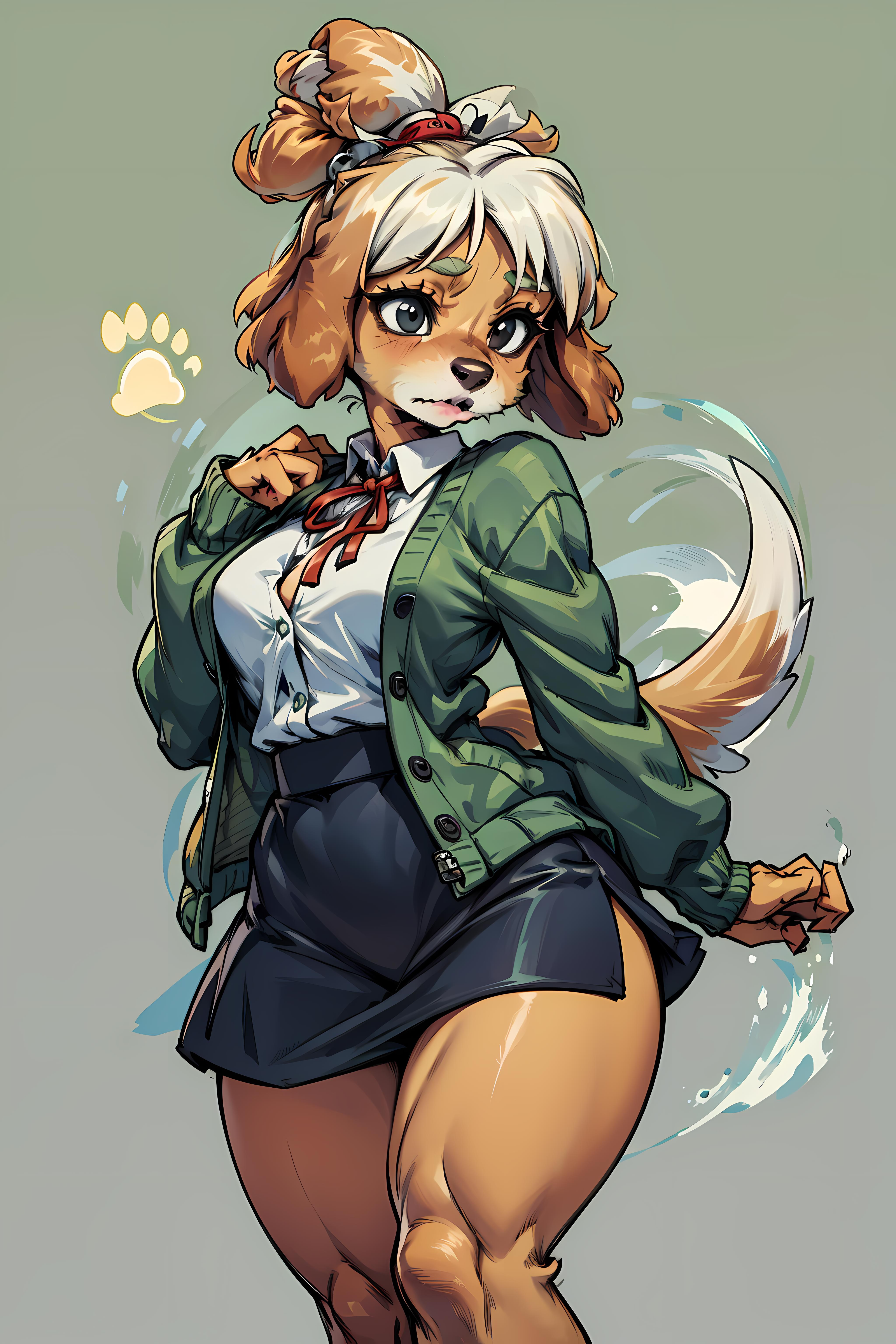 Kinda glad with the results but it could get a lot better. Her outfit almost never comes out as it should just by using the isaClothes tag. Her hair also has problems, sometimes other animal's ears show up if topknot is not used or animal ears, cat ears are not in the negative prompt.