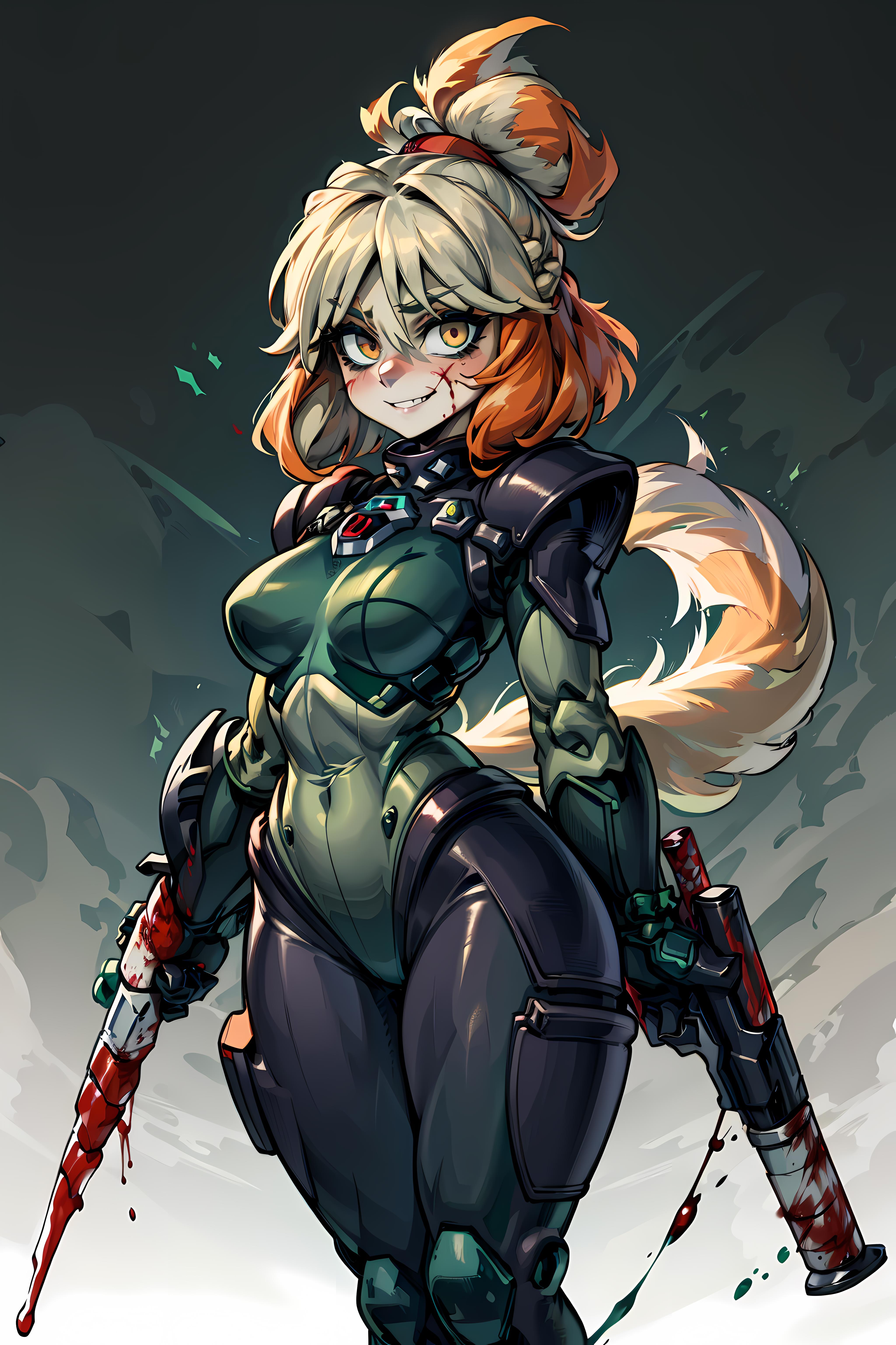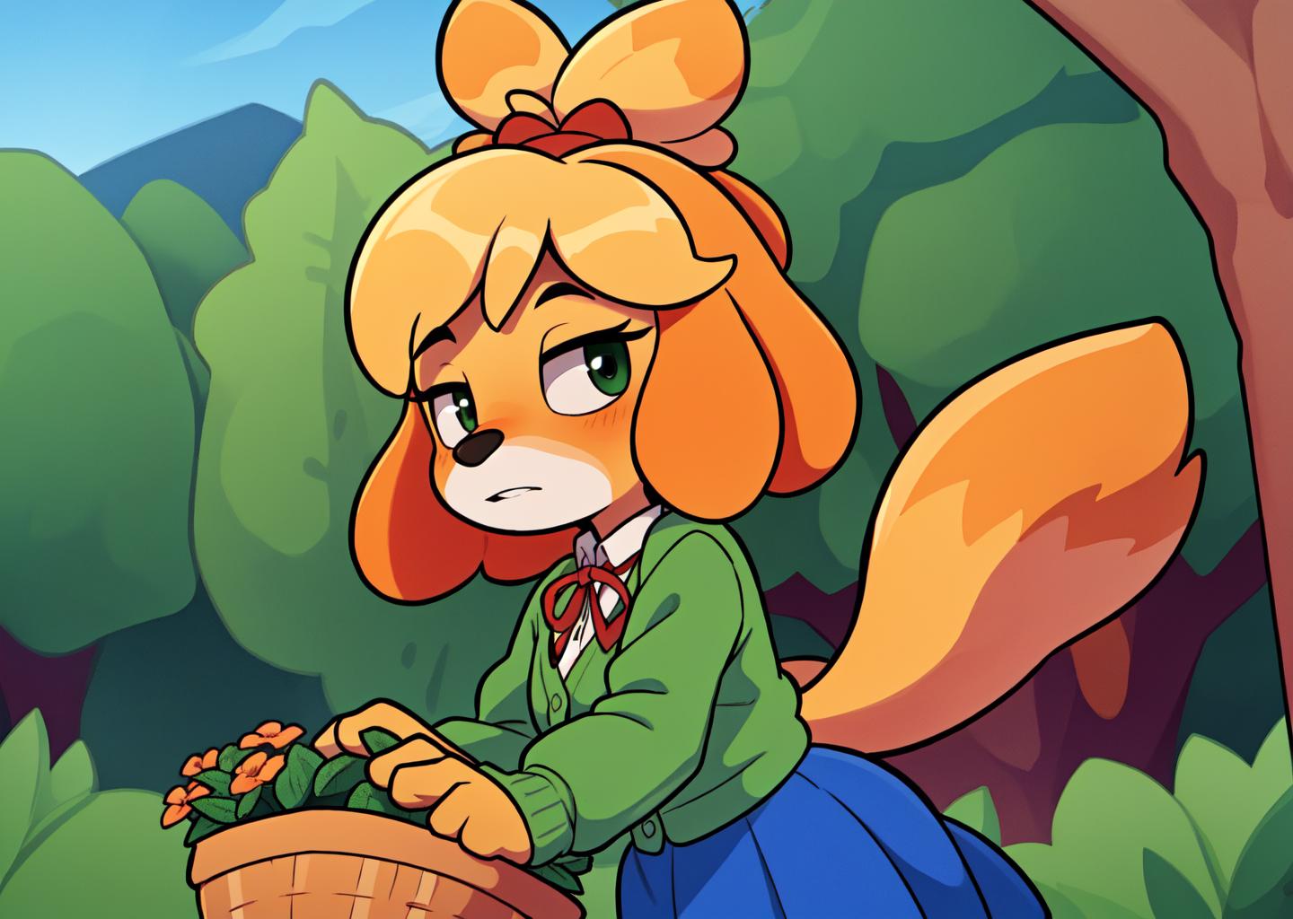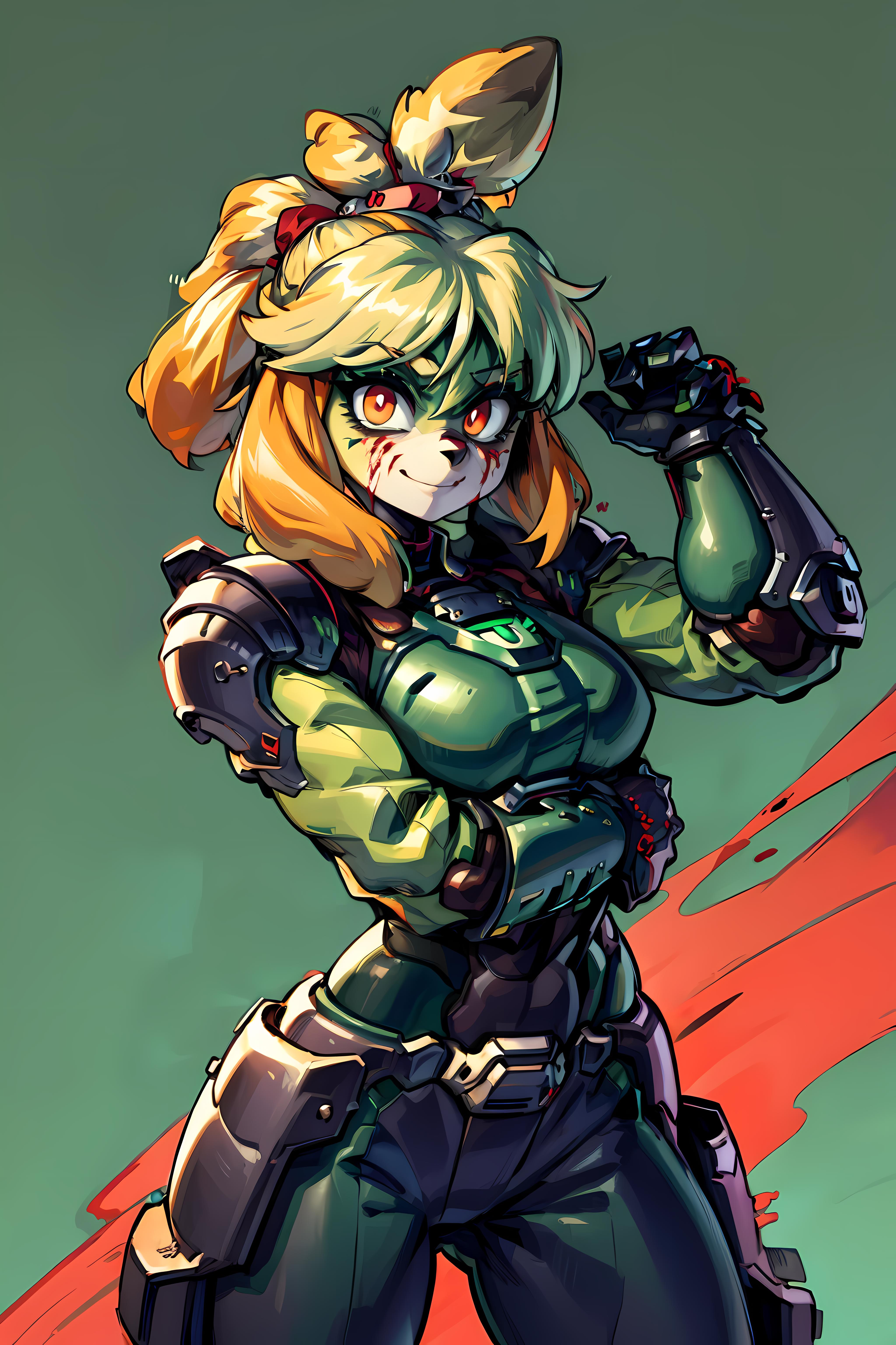 Kinda glad with the results but it could get a lot better. Her outfit almost never comes out as it should just by using the isaClothes tag. Her hair also has problems, sometimes other animal's ears show up if topknot is not used or animal ears, cat ears are not in the negative prompt.