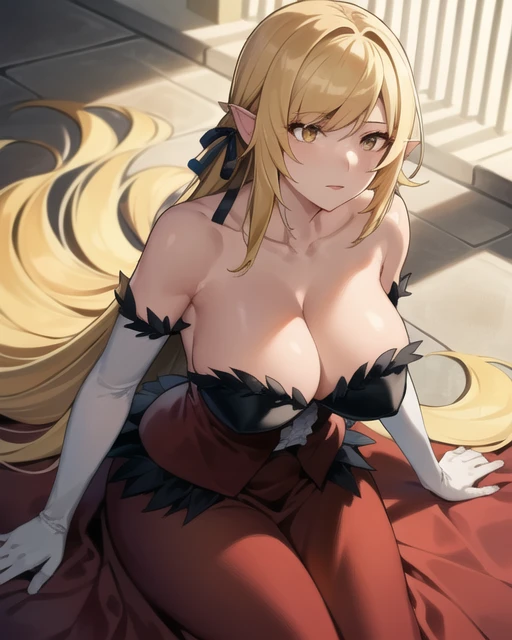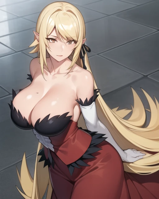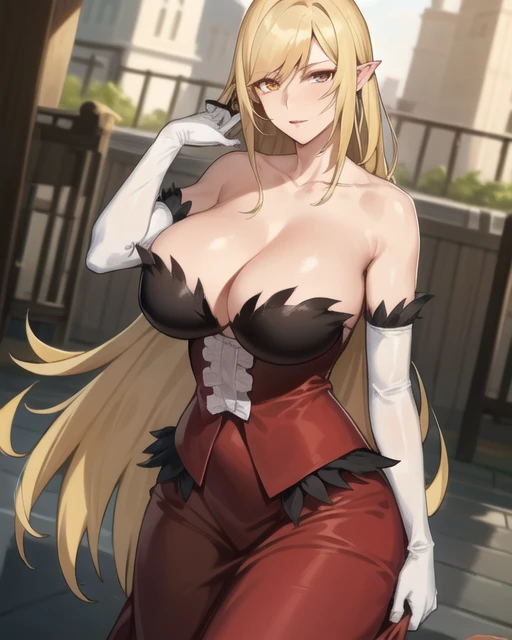 red dress,pantyhose,long skirt,dress skirt, yellow eyes,