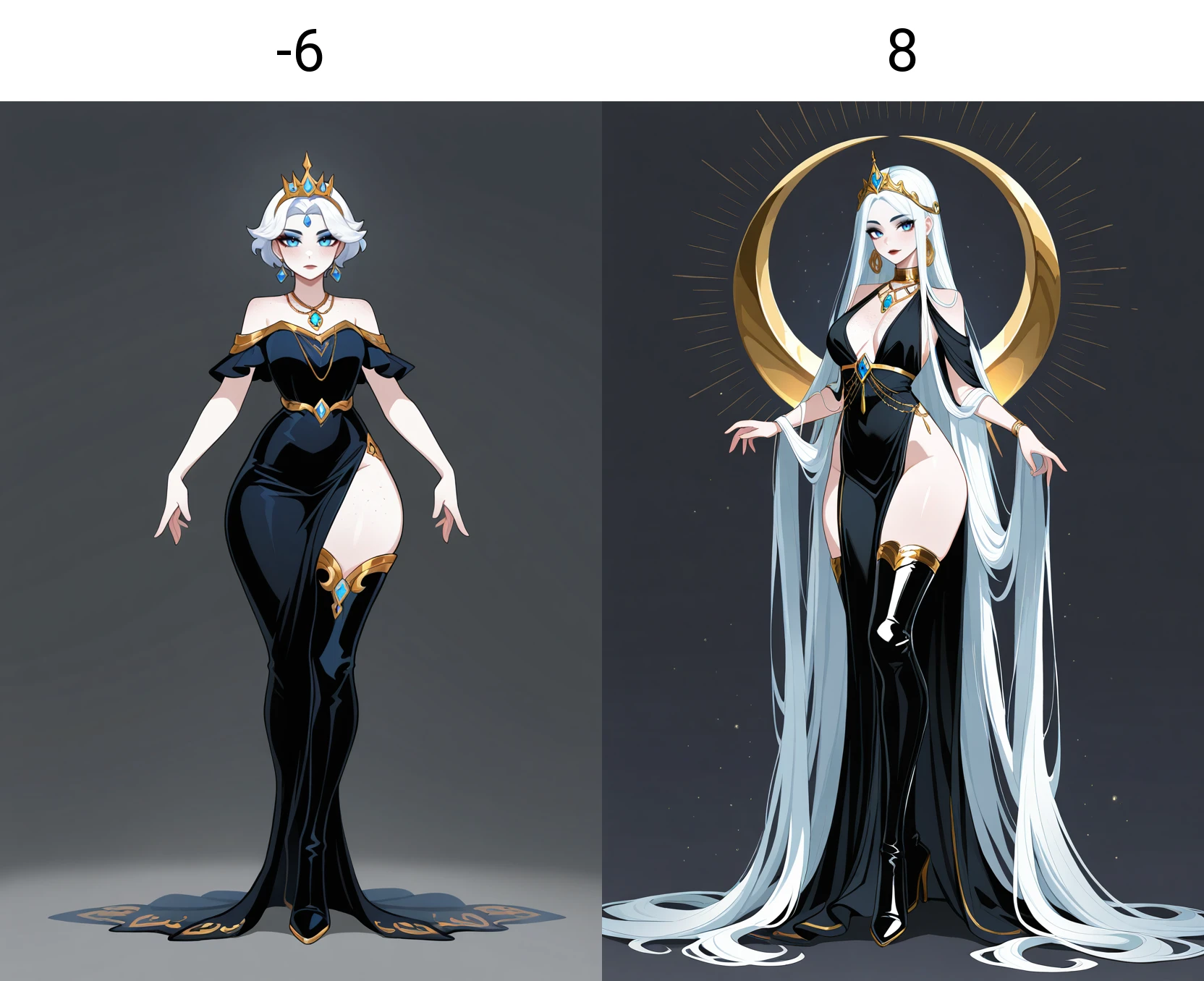 For stronger effects, use supporting prompts like "absurdly long hair" or "absurdly short hair". Otherwise, at high values, it may default to extreme lengths automatically.