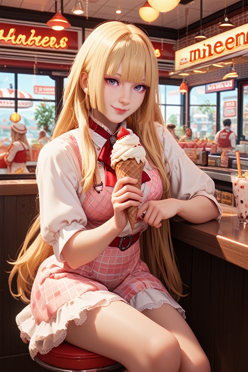 T8Lili, 1girl, blonde hair, long hair, blunt bangs