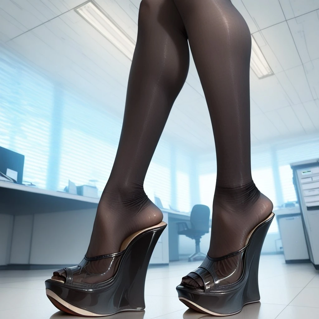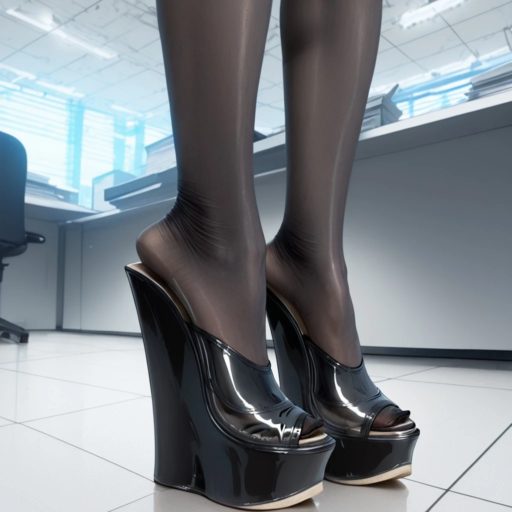 Make a pair of wedge shoes with very high heels and clear straps
