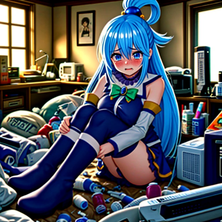 I have created a Lora depiction of someone living as a shut-in in a cluttered, messy room, resembling a 'garbage house'. While it's possible to represent a garbage house depending on the prompts used in stable diffusion, I chose to create it in Lora for more detailed and nuanced representation. I have listed other necessary prompts for depicting a garbage house below.