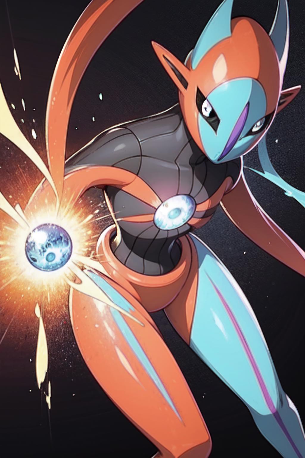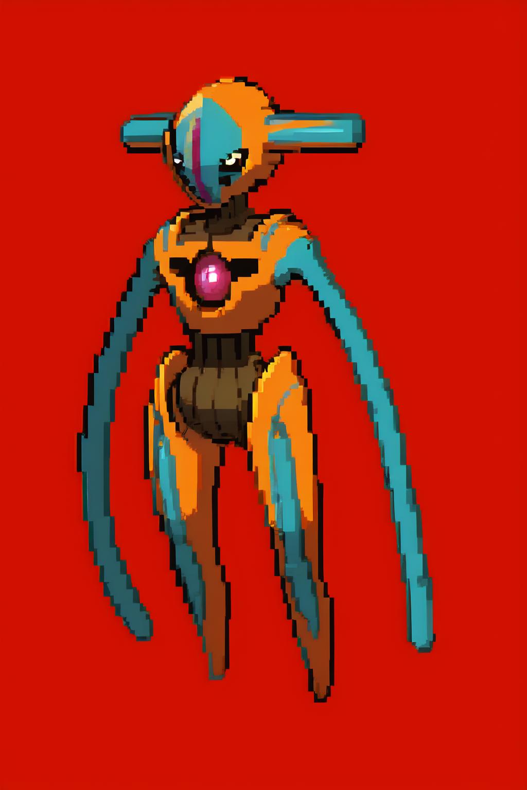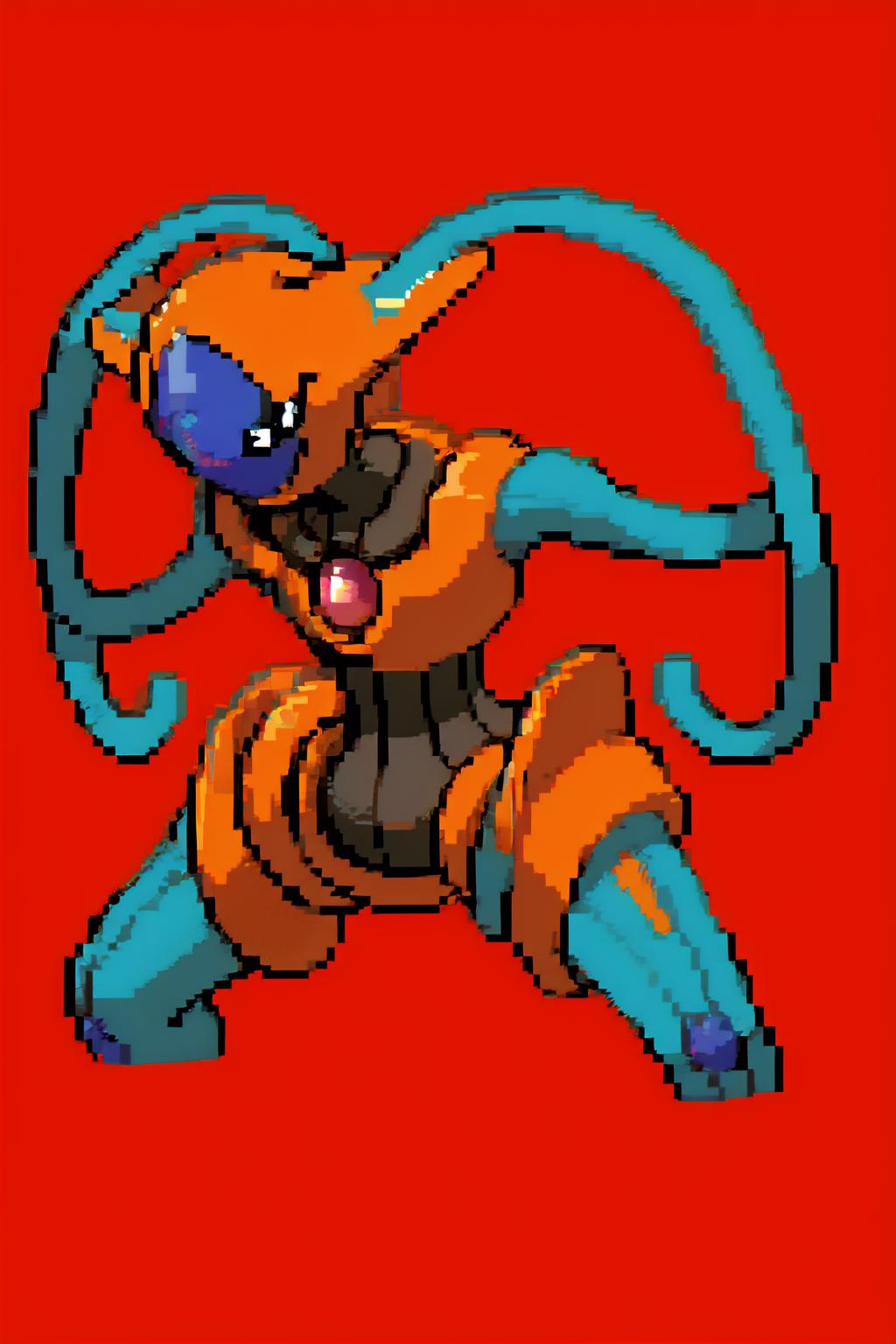 Deoxys, pokemon, red and blue skin, tentacle arms