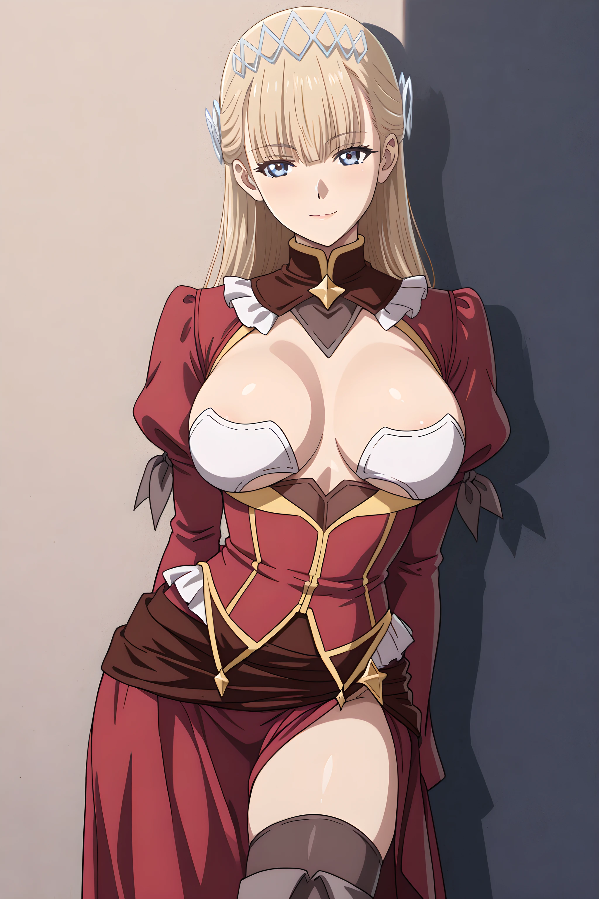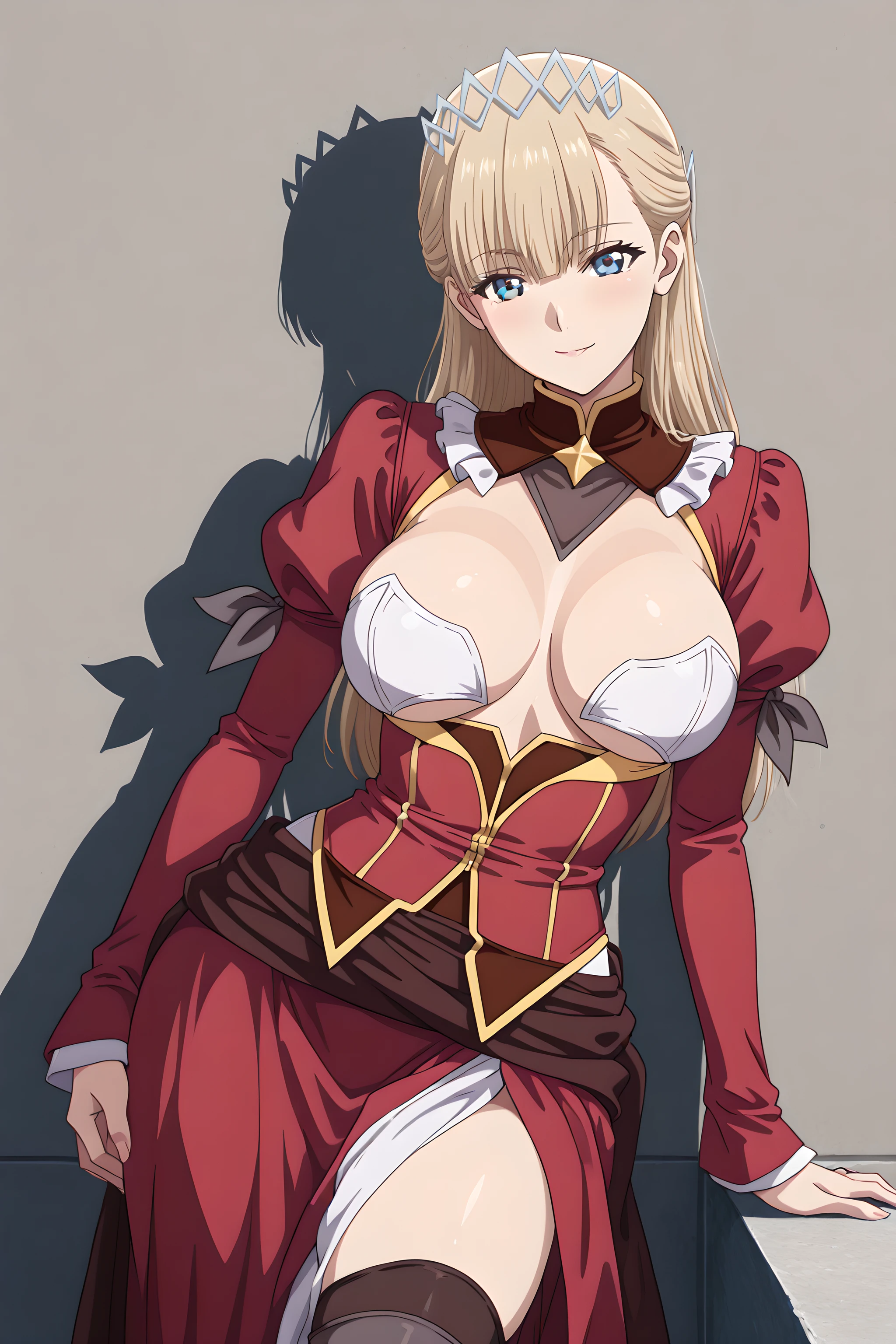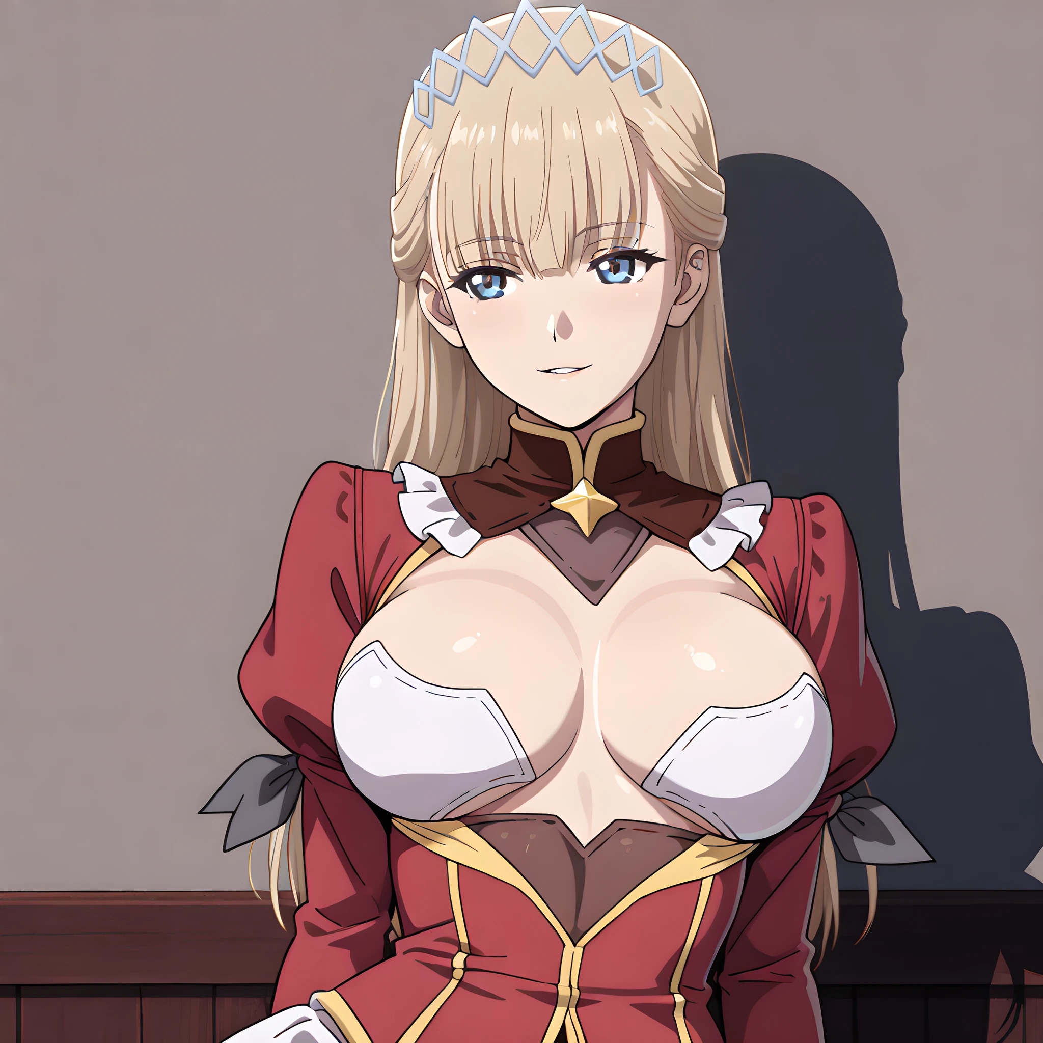 Activation tag is "seras_ashrain,". Appearance is "blonde hair, long hair, blue eyes, blunt bang, anime coloring, large breasts" . Outfit tag is at sample images.