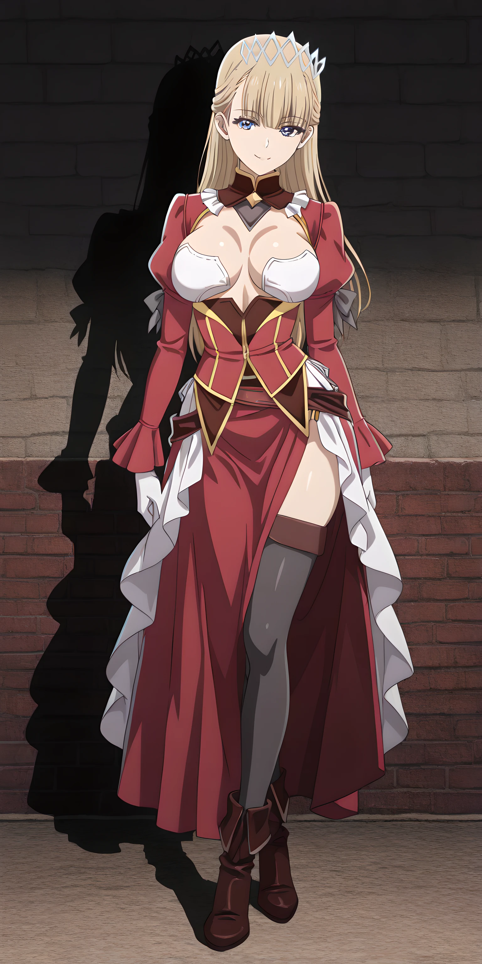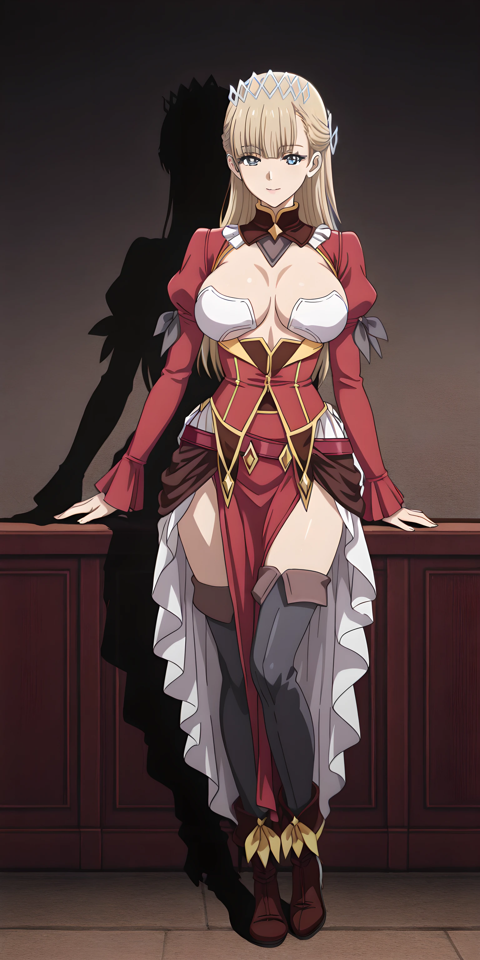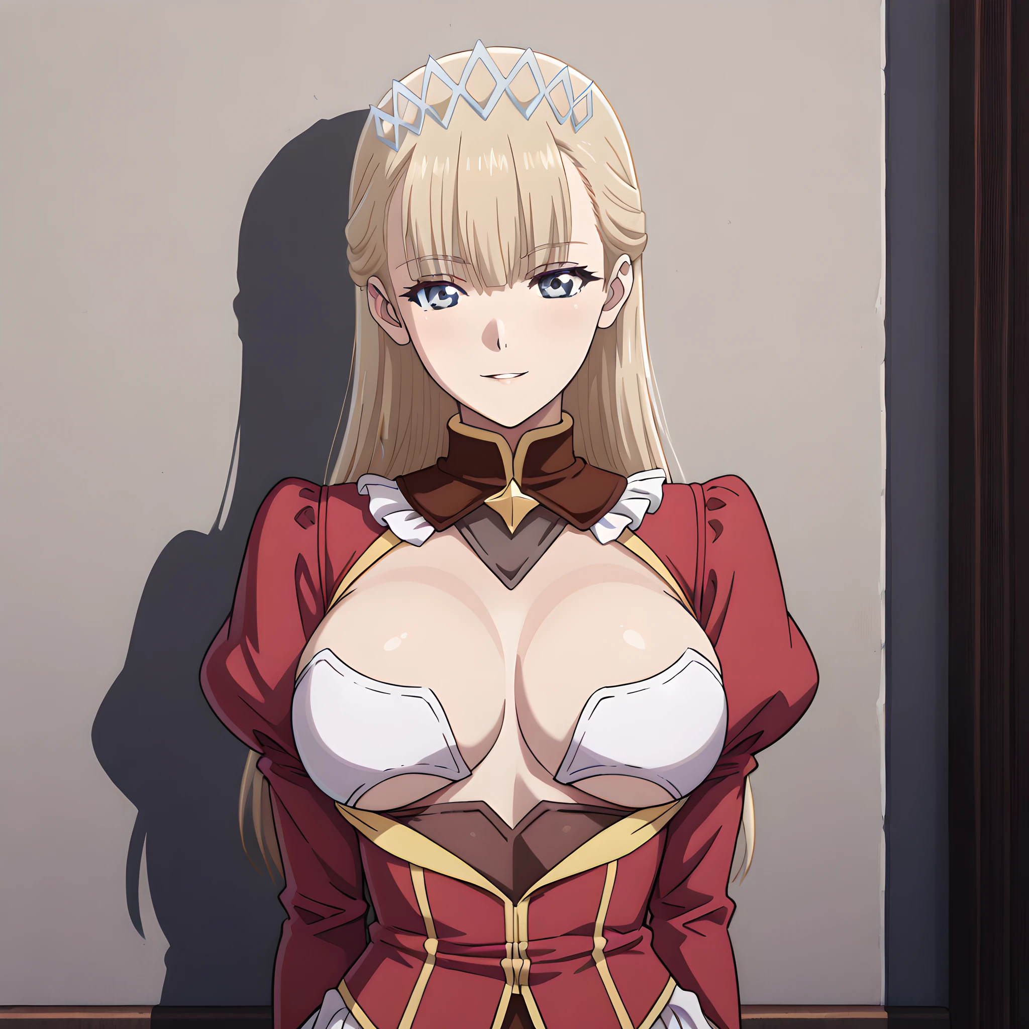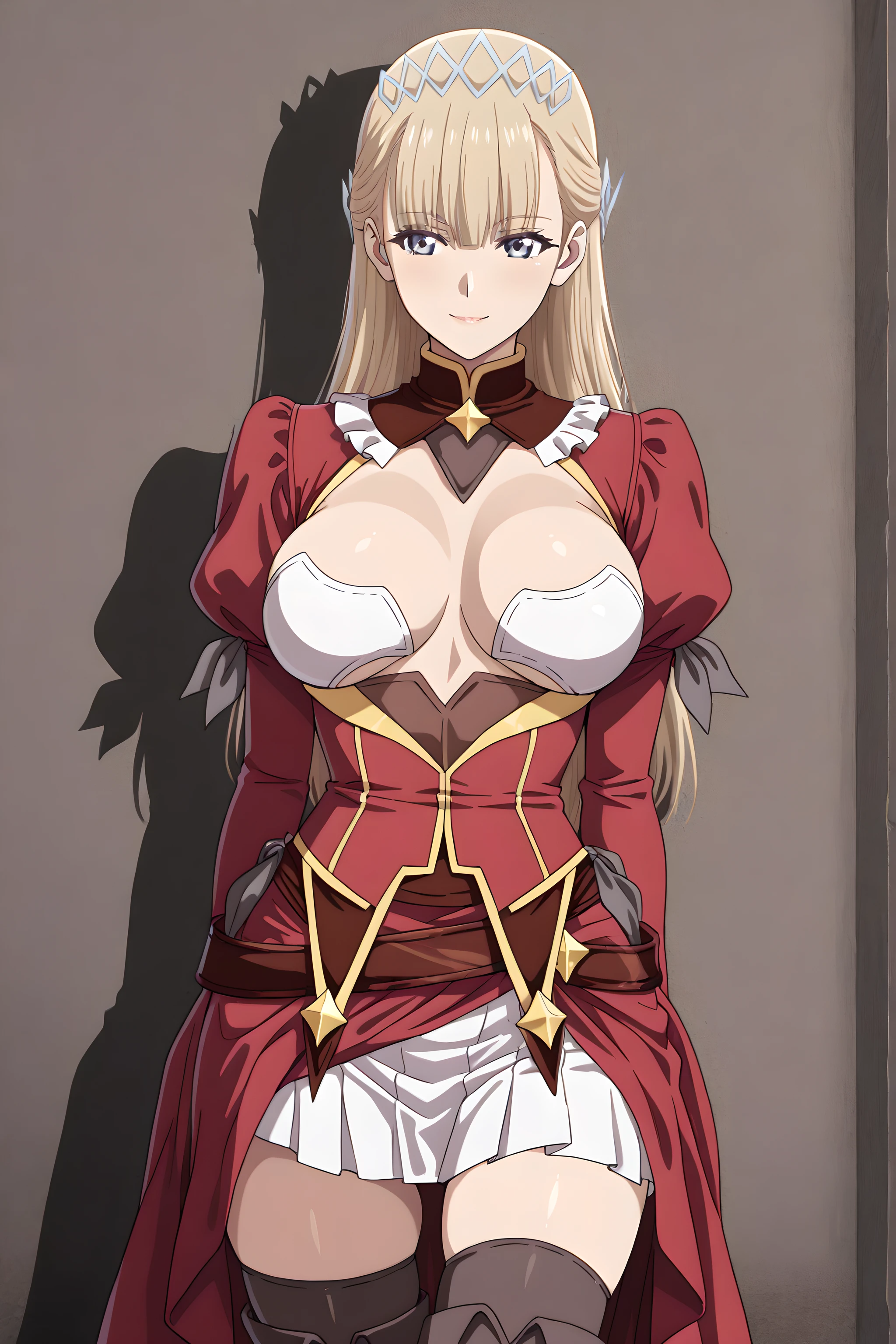 Activation tag is "seras_ashrain,". Appearance is "blonde hair, long hair, blue eyes, blunt bang, anime coloring, large breasts" . Outfit tag is at sample images.