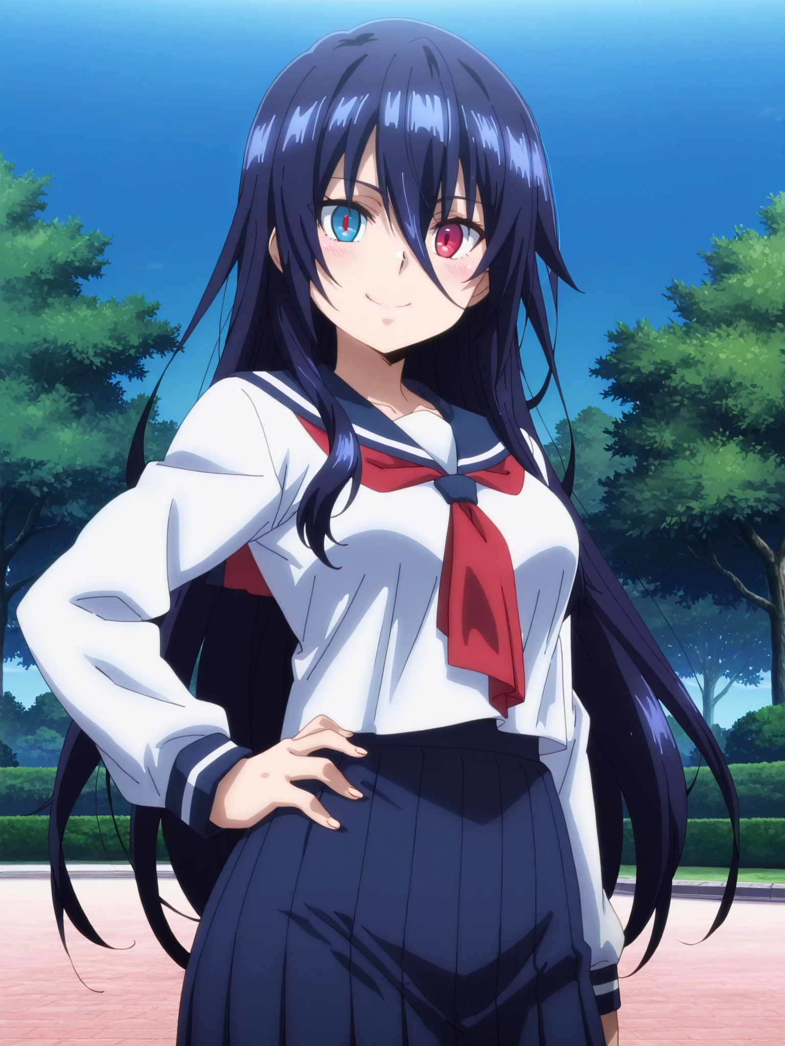 — She is a stern and formidable warrior whose strength and determination stand out even among the bikini-clad fighters. She throws in game-like jargon in her speech, hinting she sees battles almost like leveling up a character. Despite her tough facade, she harbors an irrational fear of undead creatures—something she never admits willingly. Her dual-colored eyes and unwavering resolve make her both intimidating and strangely relatable.