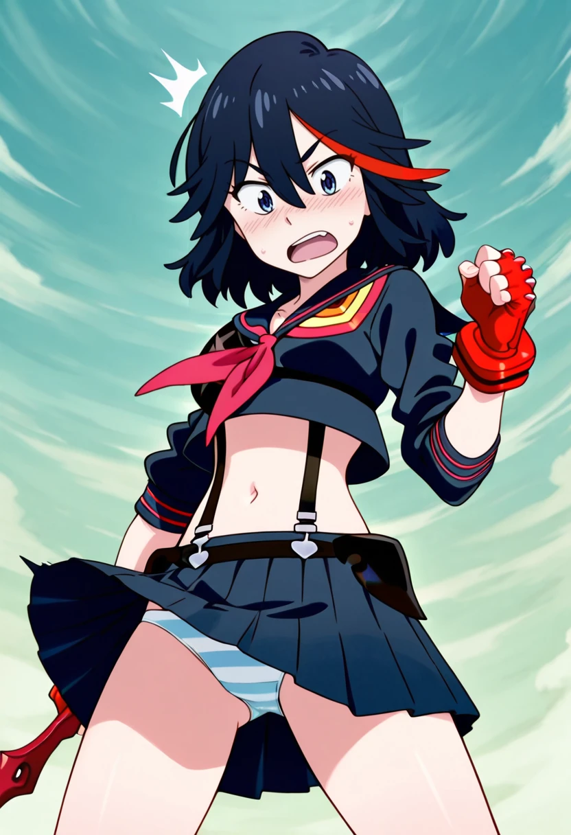 revealing clothes, senketsu, skirt, suspenders, midriff, thighhighs, underboob