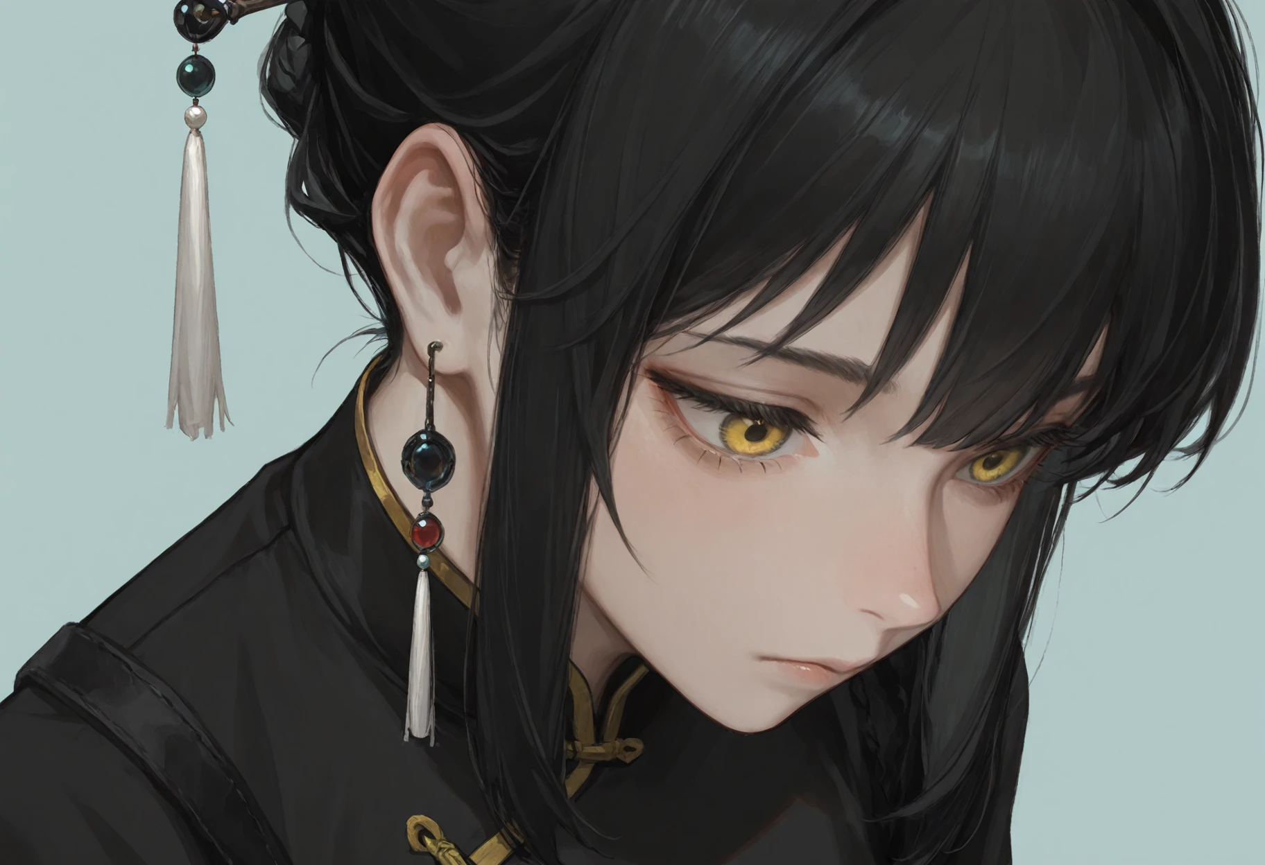 Sa,black hair,sidelocks,yellow eyes,