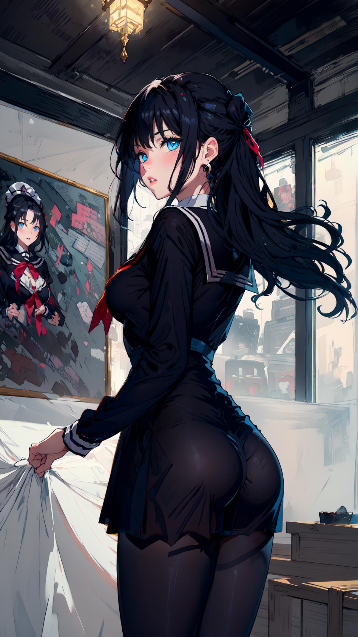 4、触发词为:tutututu,black school uniform,black serafuku, sailor collar,black miniskirt, long sleeves, 都写上的话,如果能正确出图,参数设置无误,又没有其他LORA干扰,大概率会几乎100%还原原版衣服。
