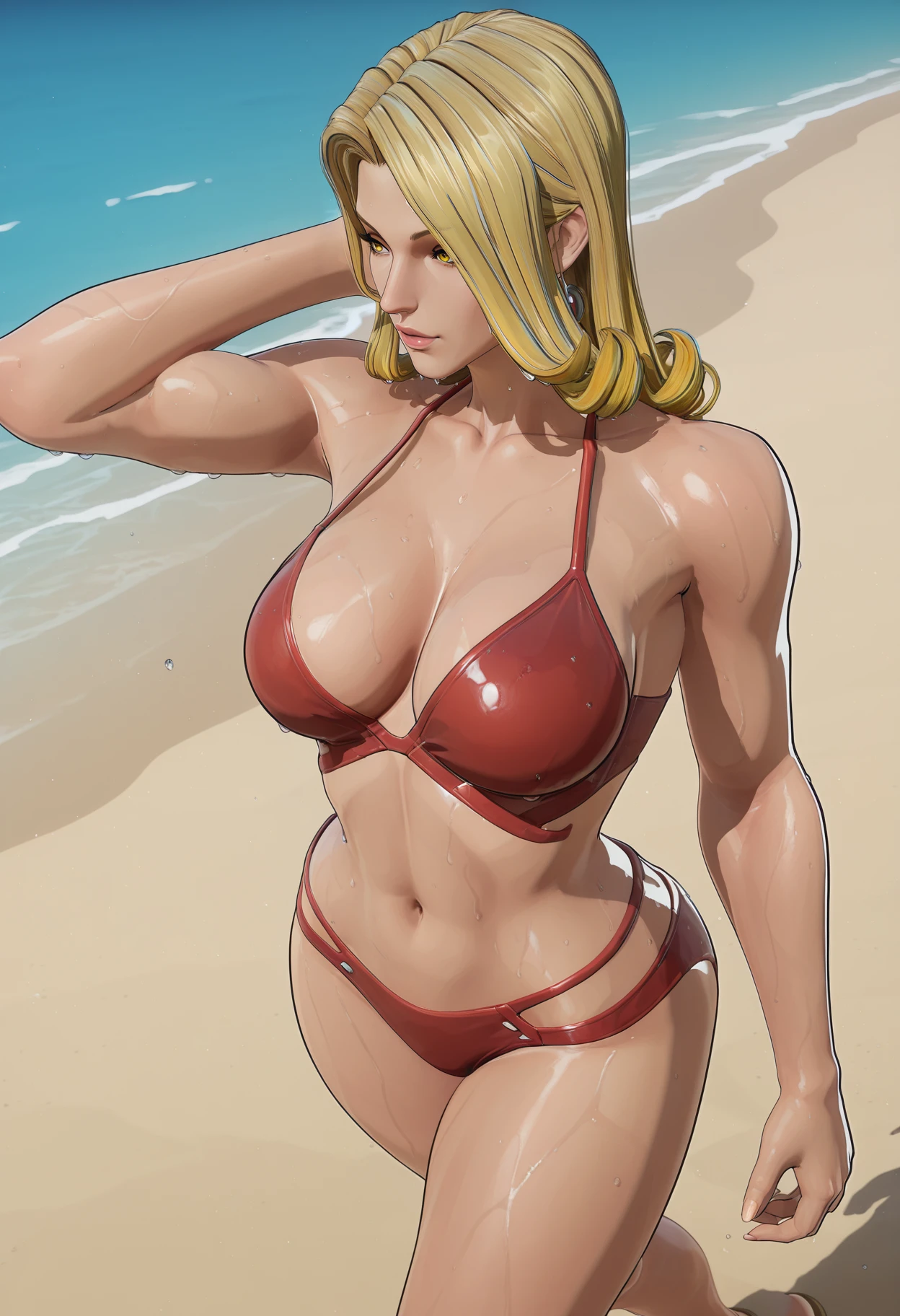 mm,mature female,blonde hair,long hair,yellow eyes,3d,realistic
