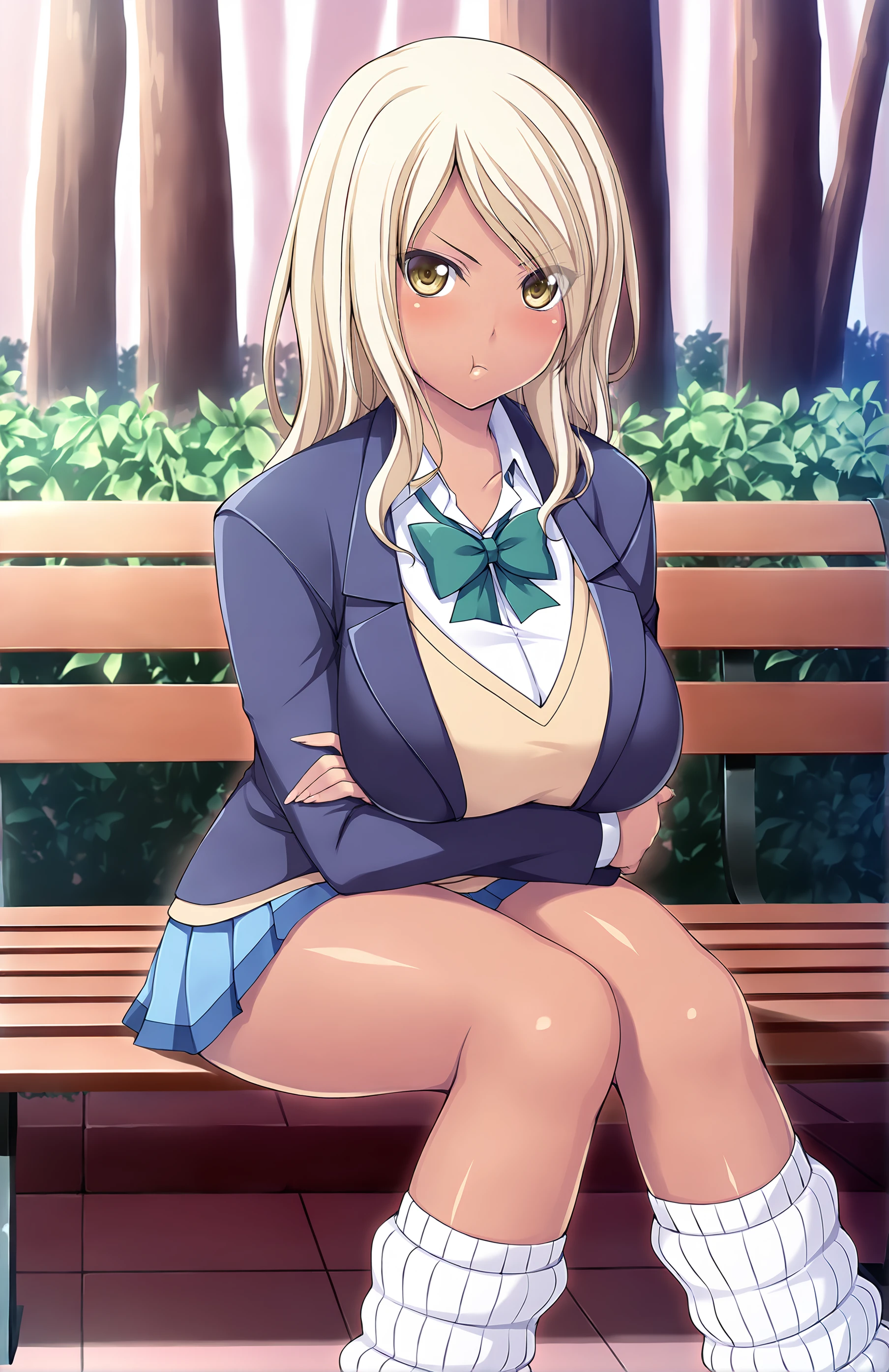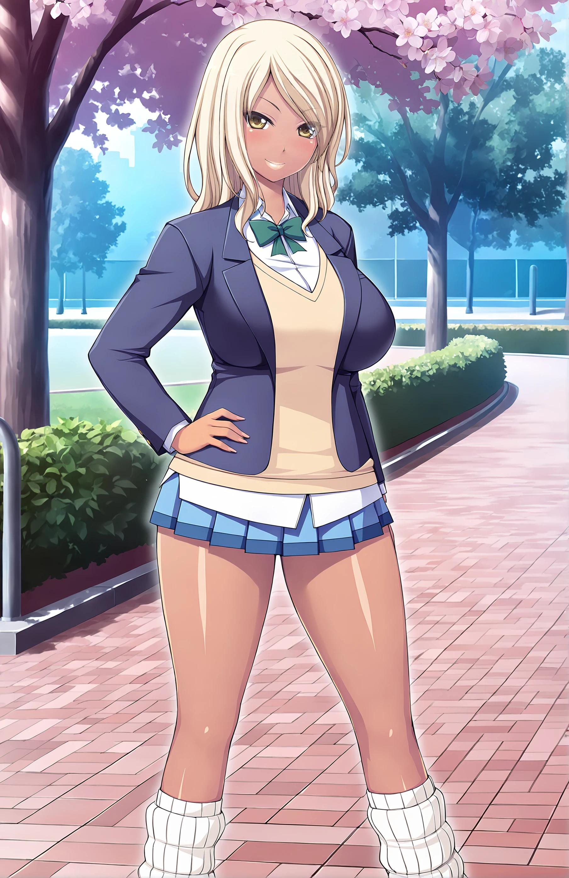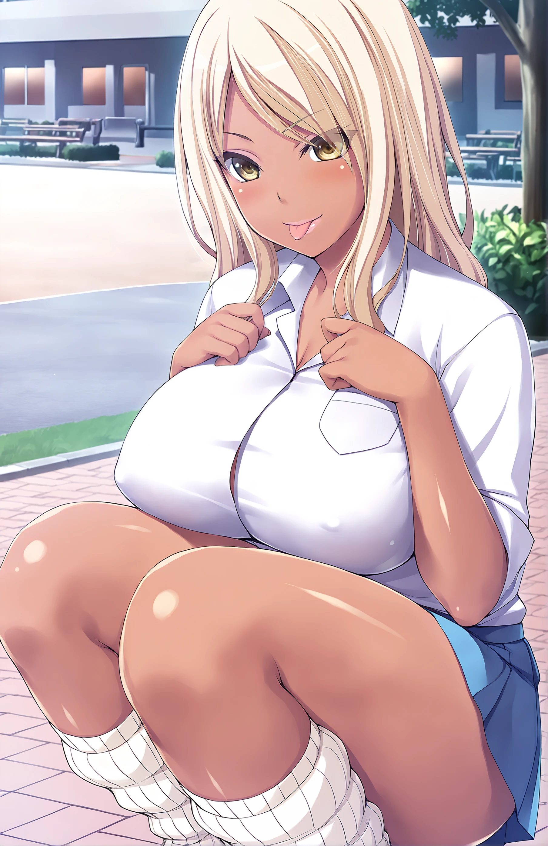 AsakawaNaomi, long hair, breasts, blonde hair, large breast, yellow eyes, dark skin, dark-skinned female, gyaru, kogal, ganguro