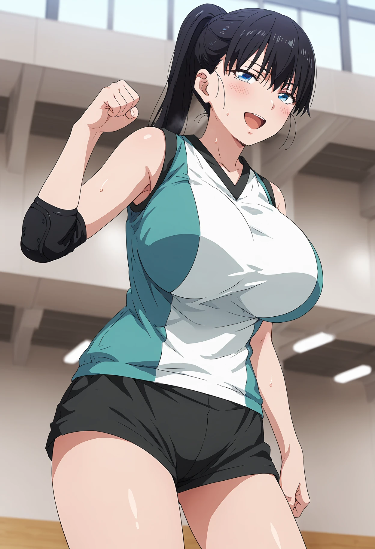 volleyball uniform, black shorts, sleeveless,