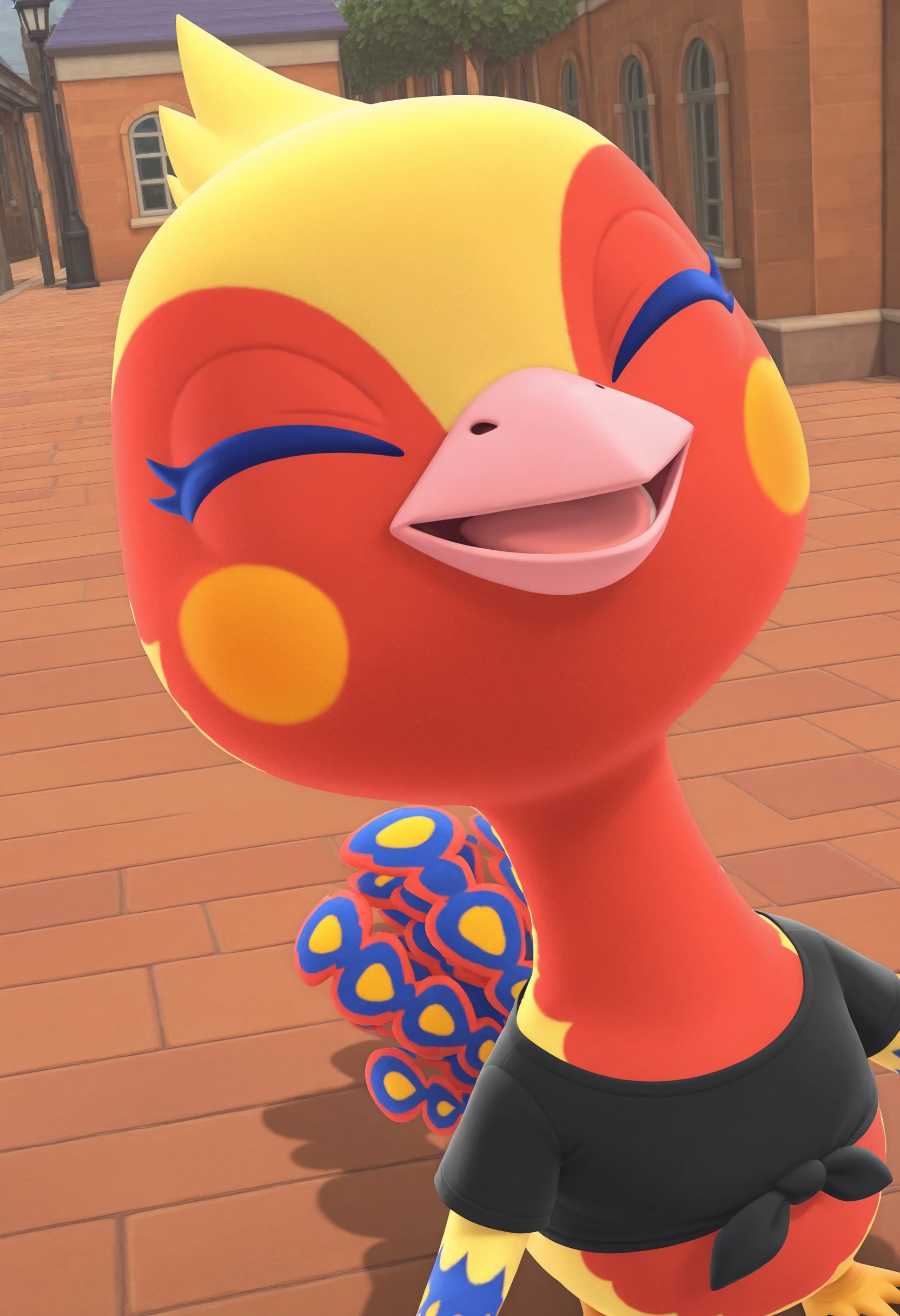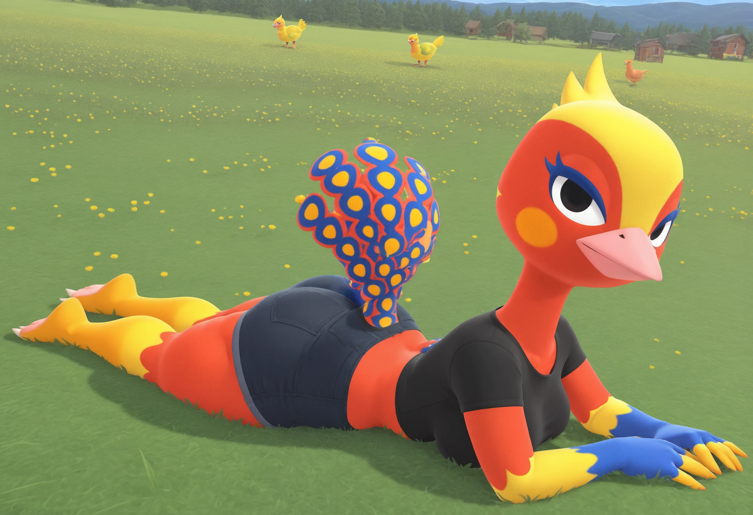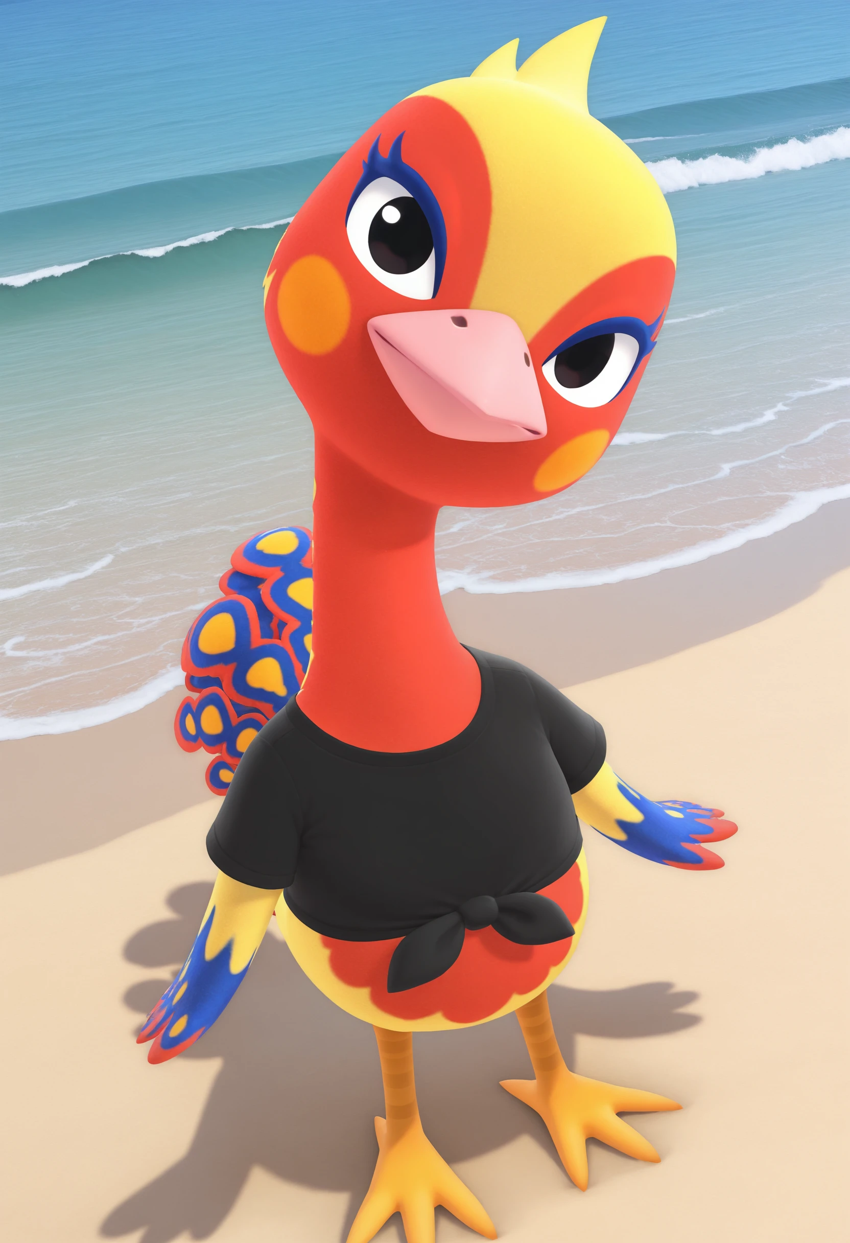 furry, ostrich, ostrich tail, blue eyelashes, black eyes, beak, bird, black top,Description