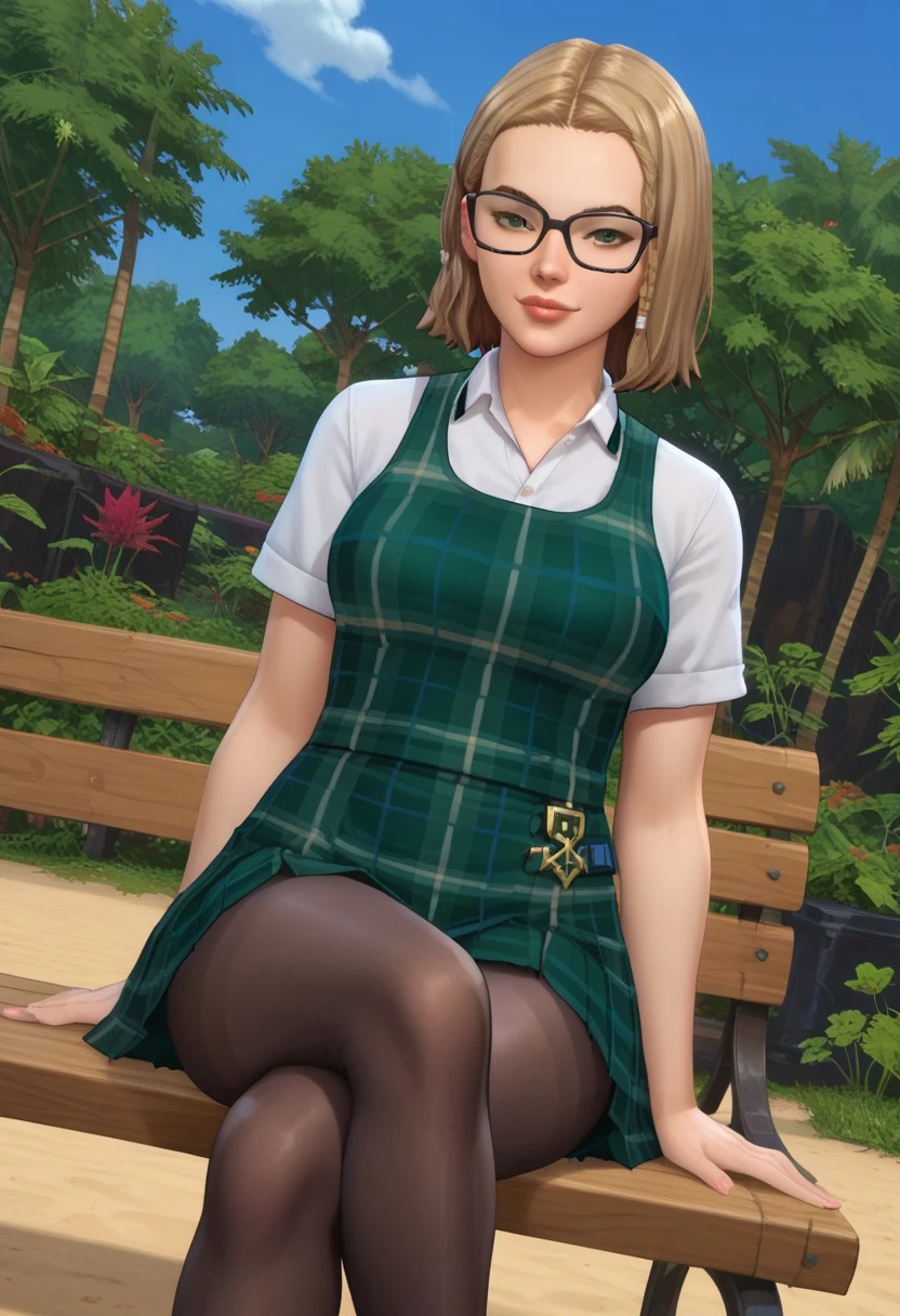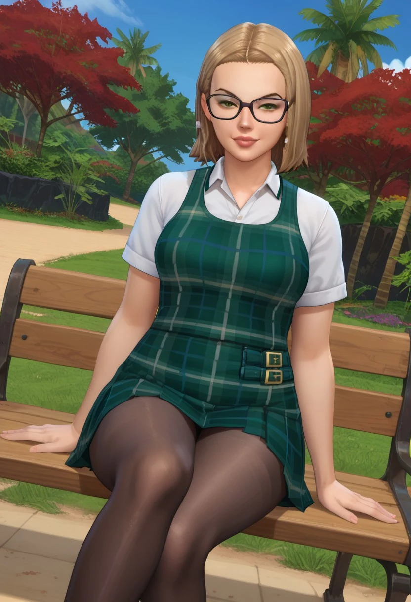Sims4MollyPrescott, 1girl, brown hair, blonde hair, short hair, brown eyes, lips,