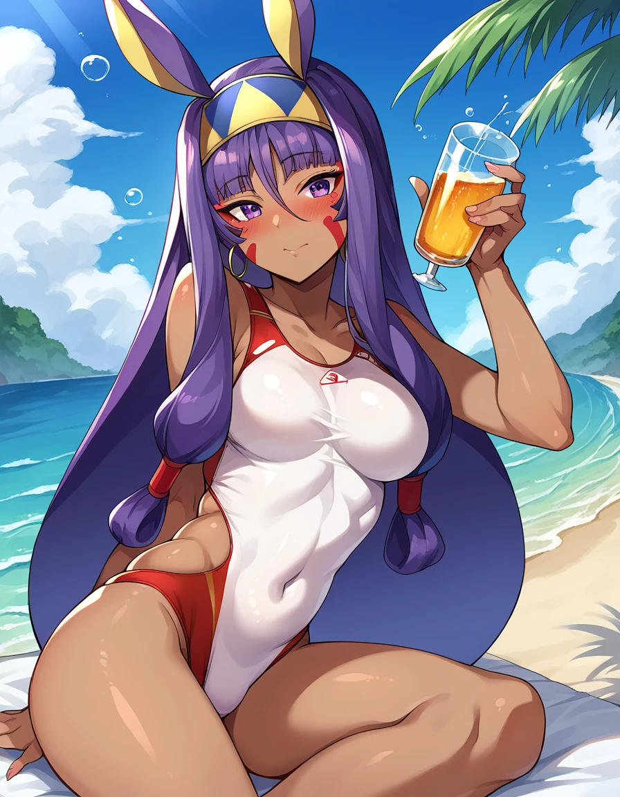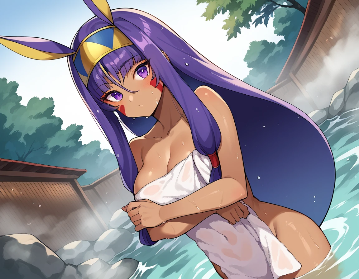 nitocris, animal ears, dark skin, dark-skinned female, facial mark, hair between eyes, long hair, purple eyes, purple hair, sidelocks,