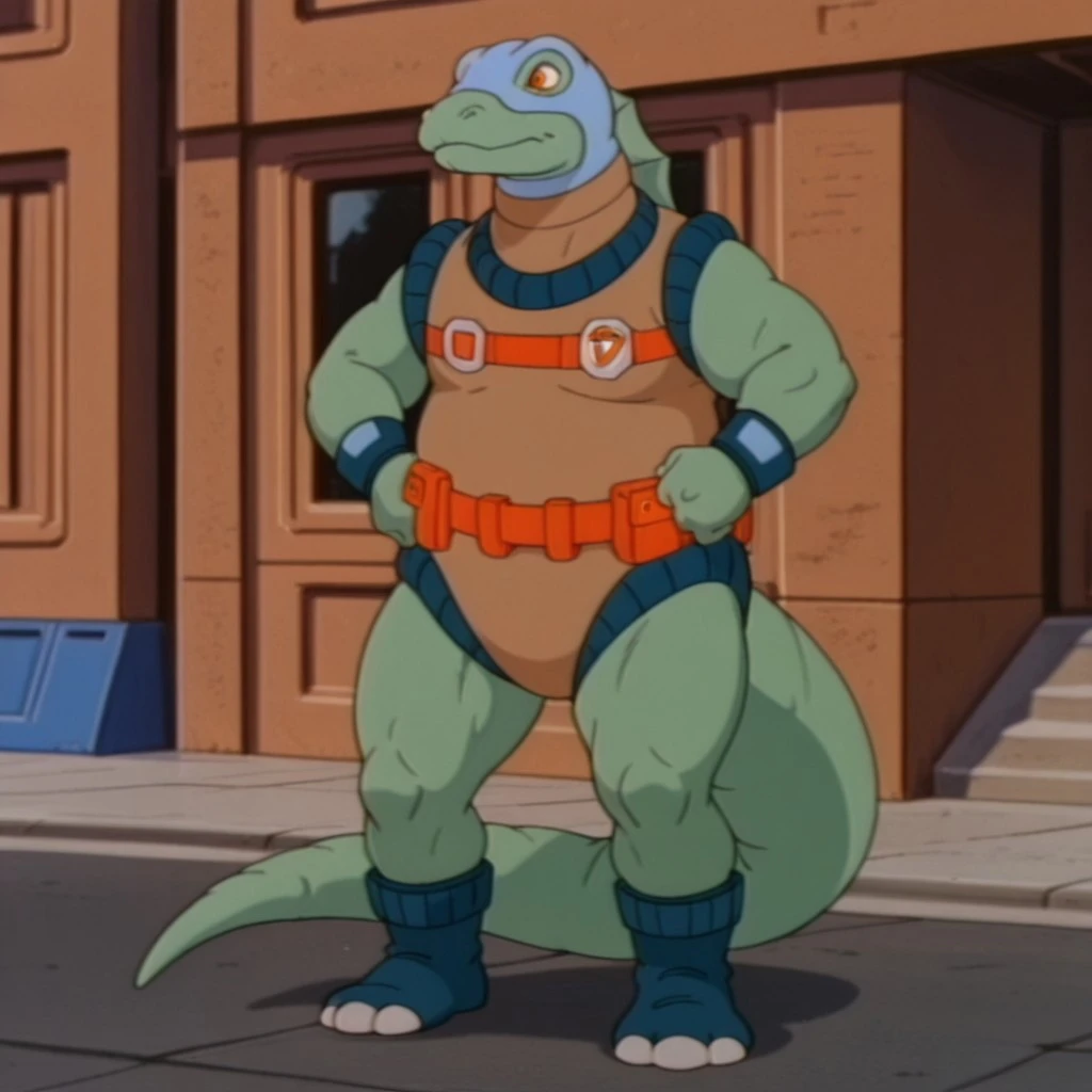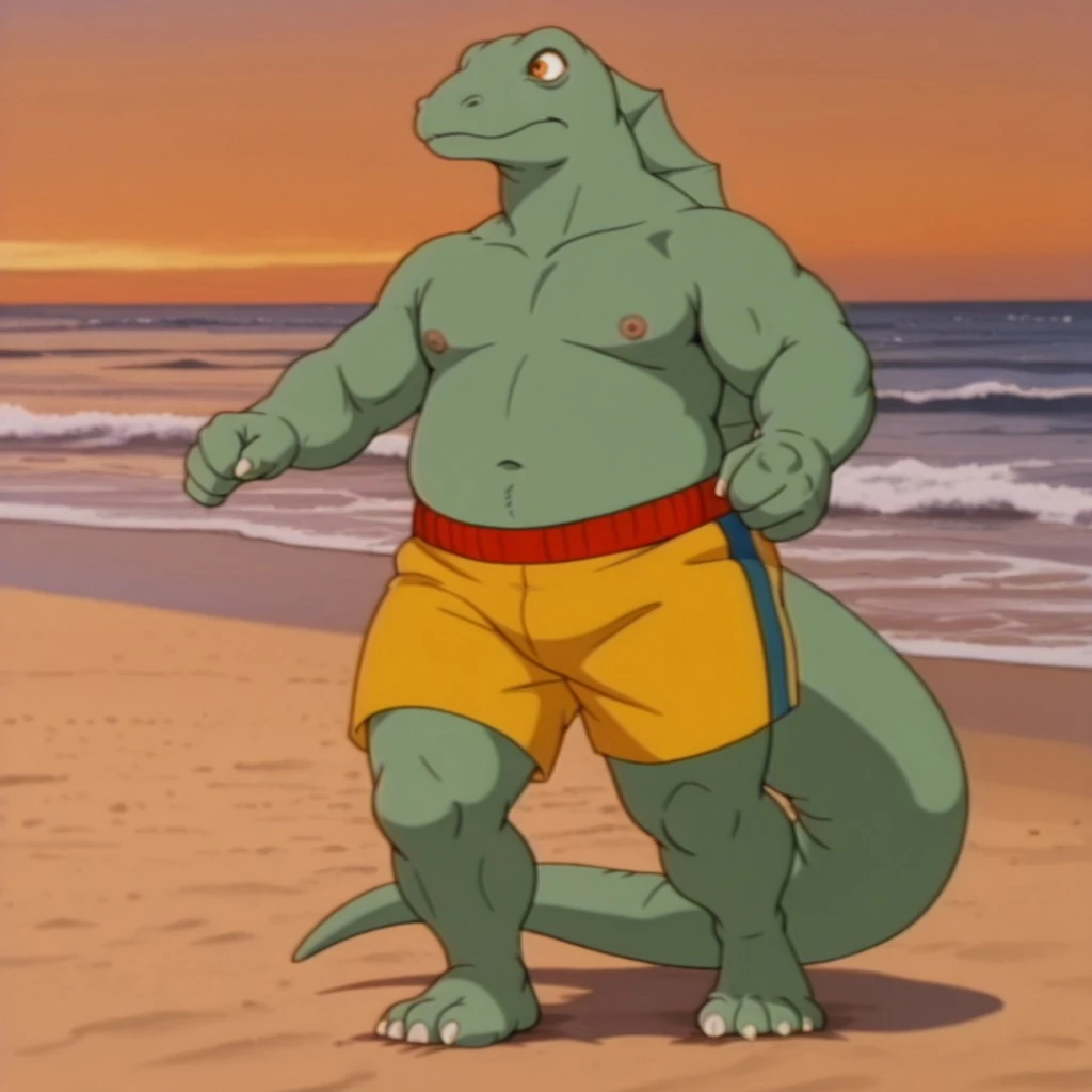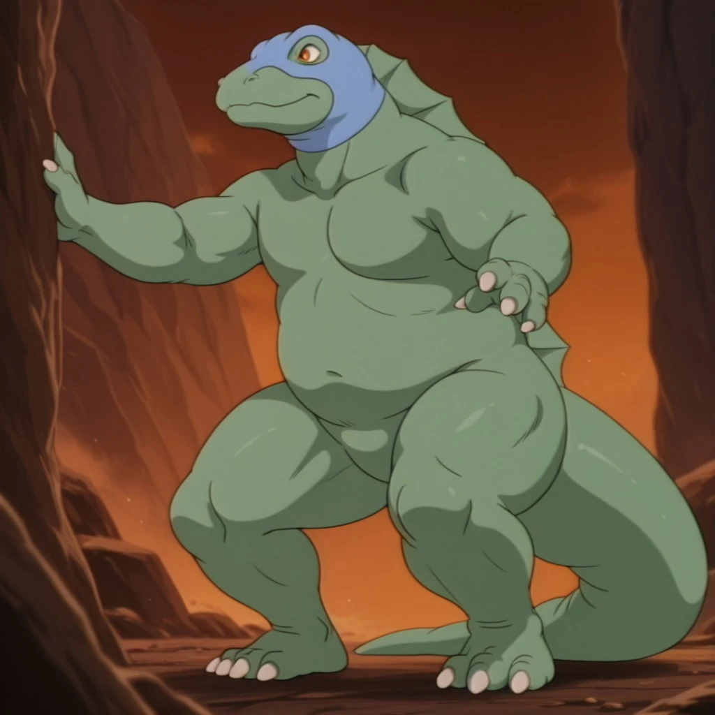DimetroDsil, anthro, male, Dimetrodon, green skin, orange eyes, back sail,