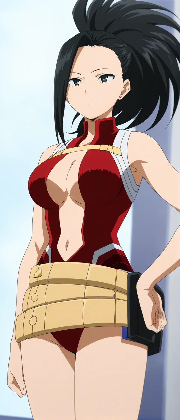 herooutfit, red leotard, belt, navel, boots,