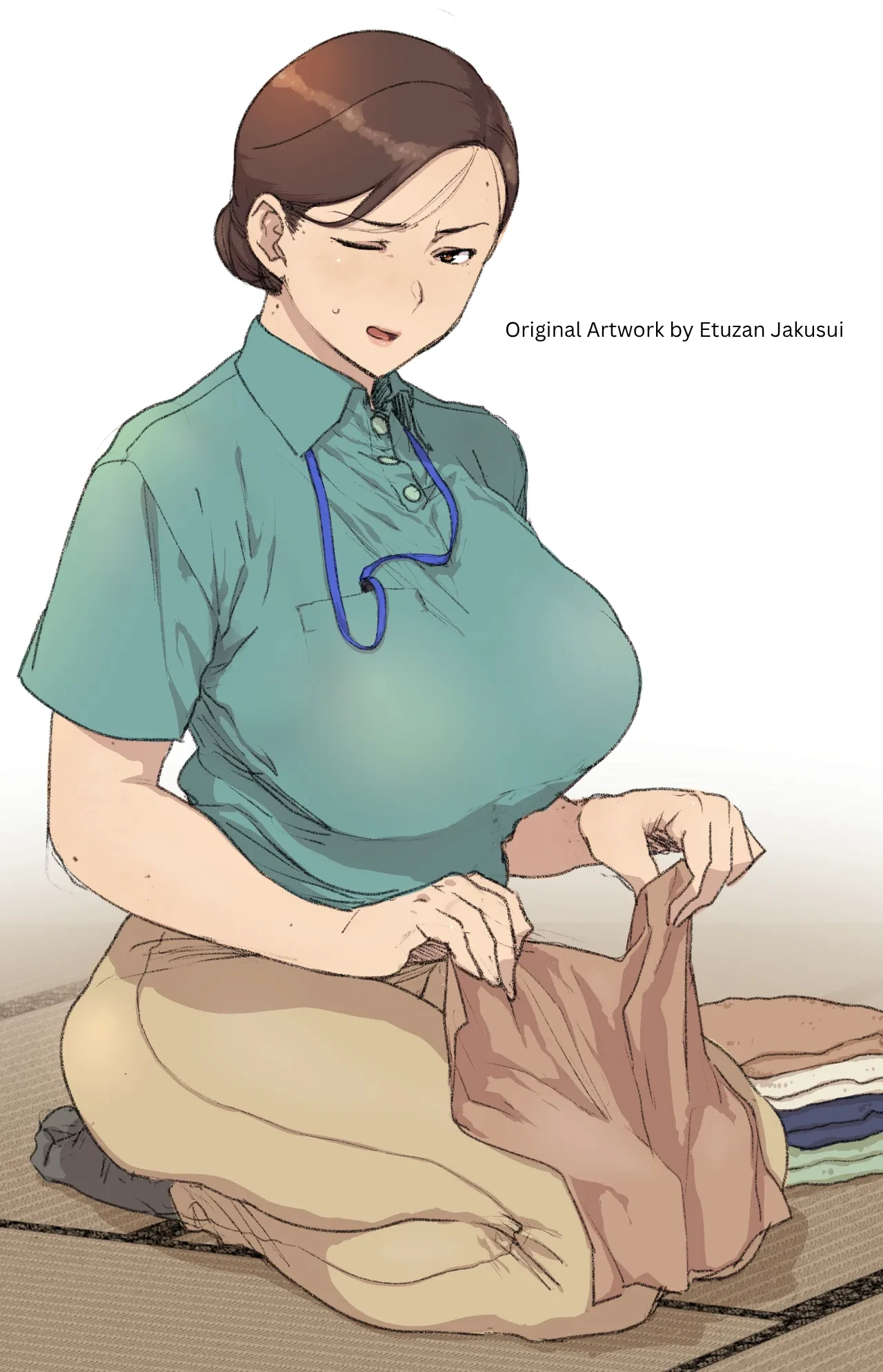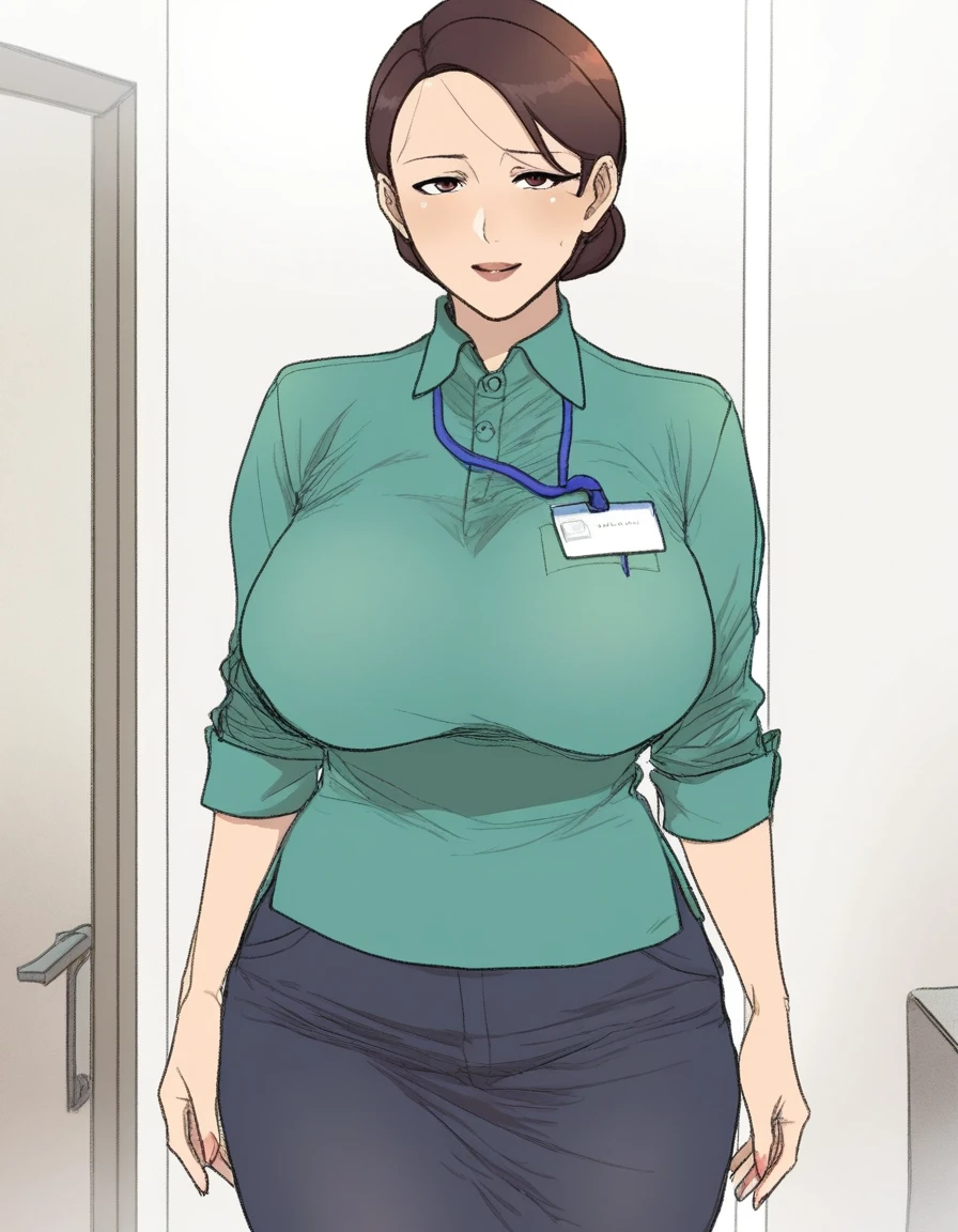 k0sh1y4m4 jy4kusa1, , mature woman, green shirt, solo