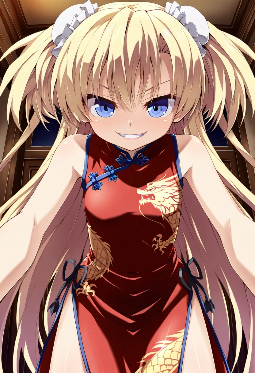 dress, ribbon, choker, headdress, frills, bare shoulders, detached sleeves, bridal garter