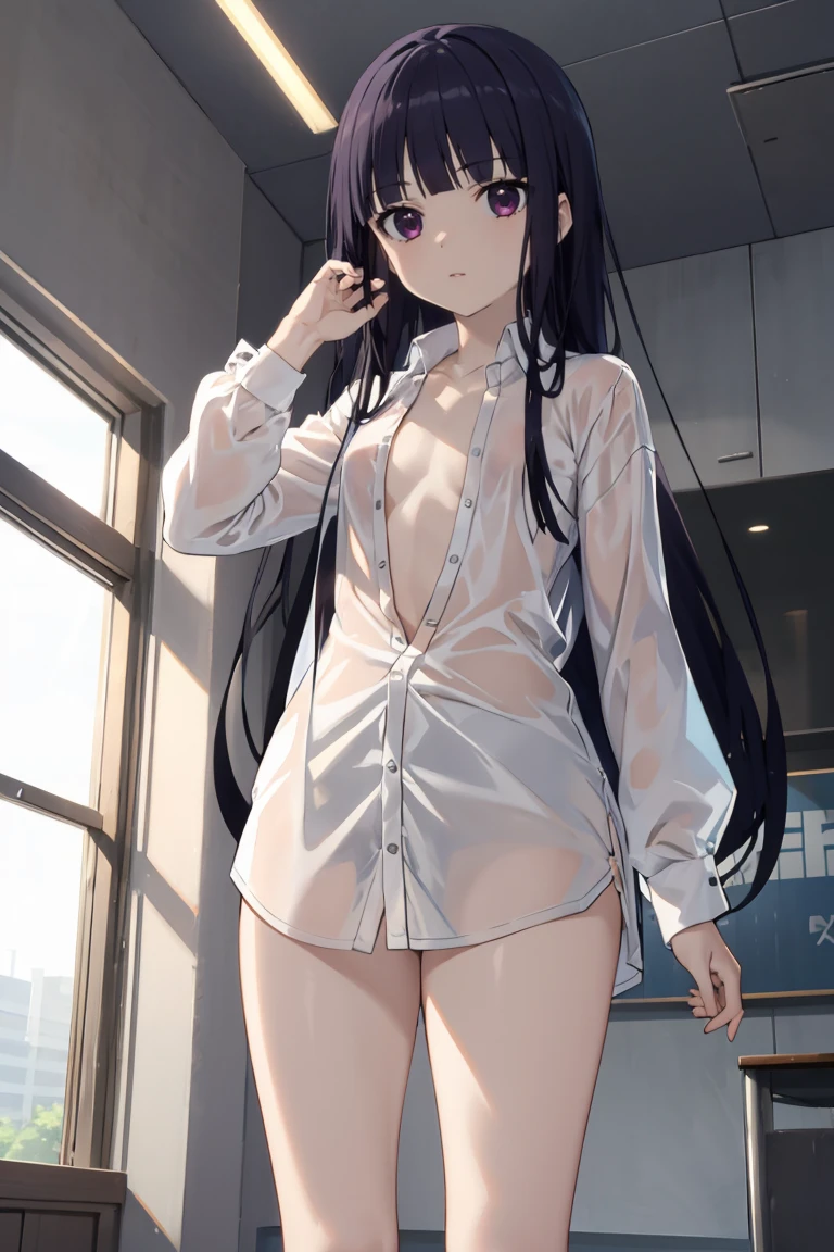 ririchiyo, black hair, long hair, flat chest