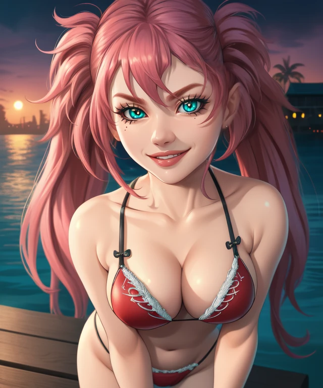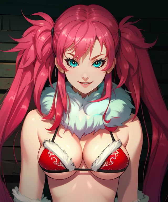 Kagura, pink hair, twintails, aqua eyes, slit pupils,