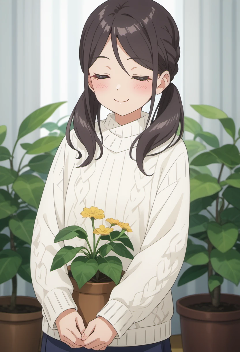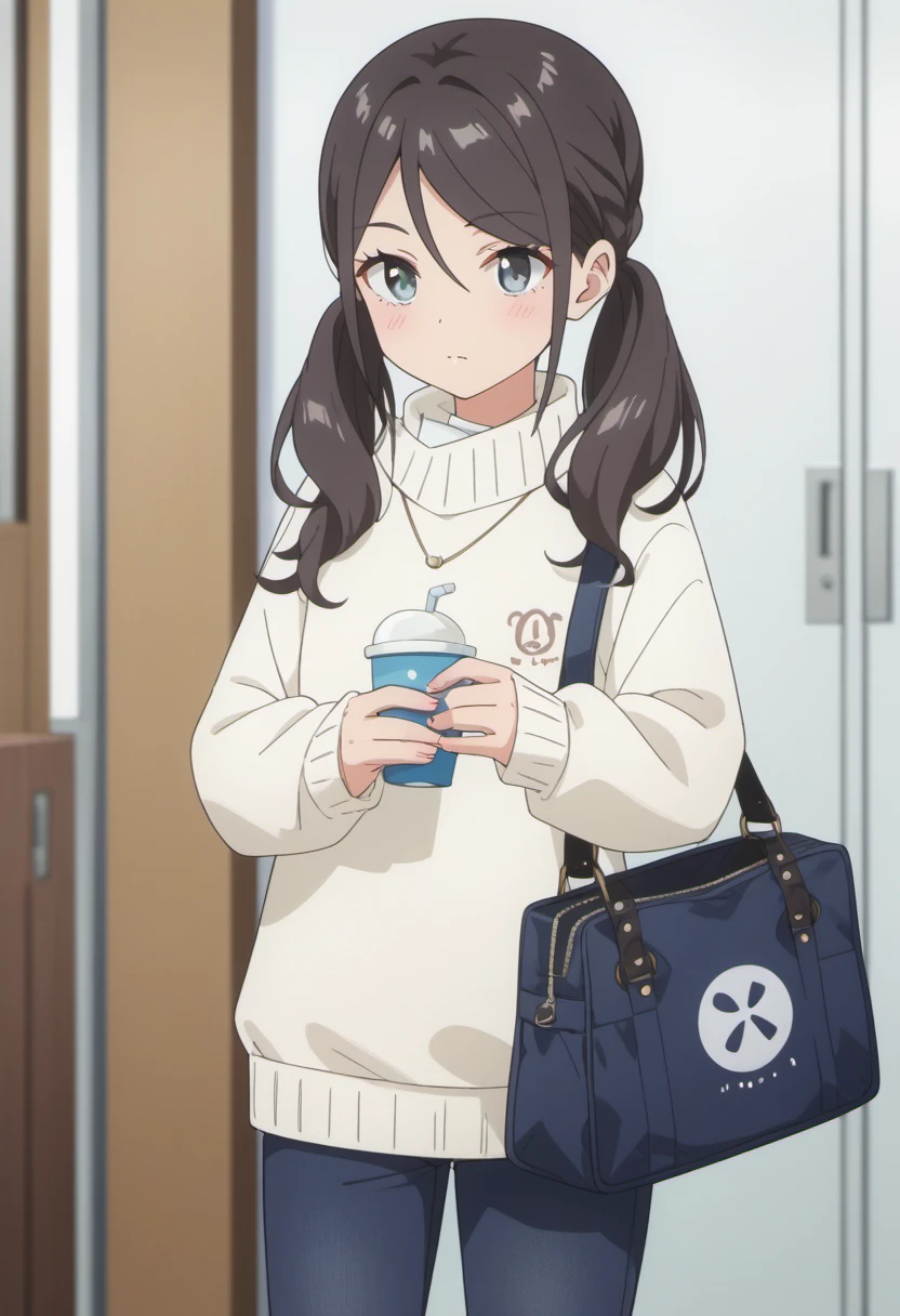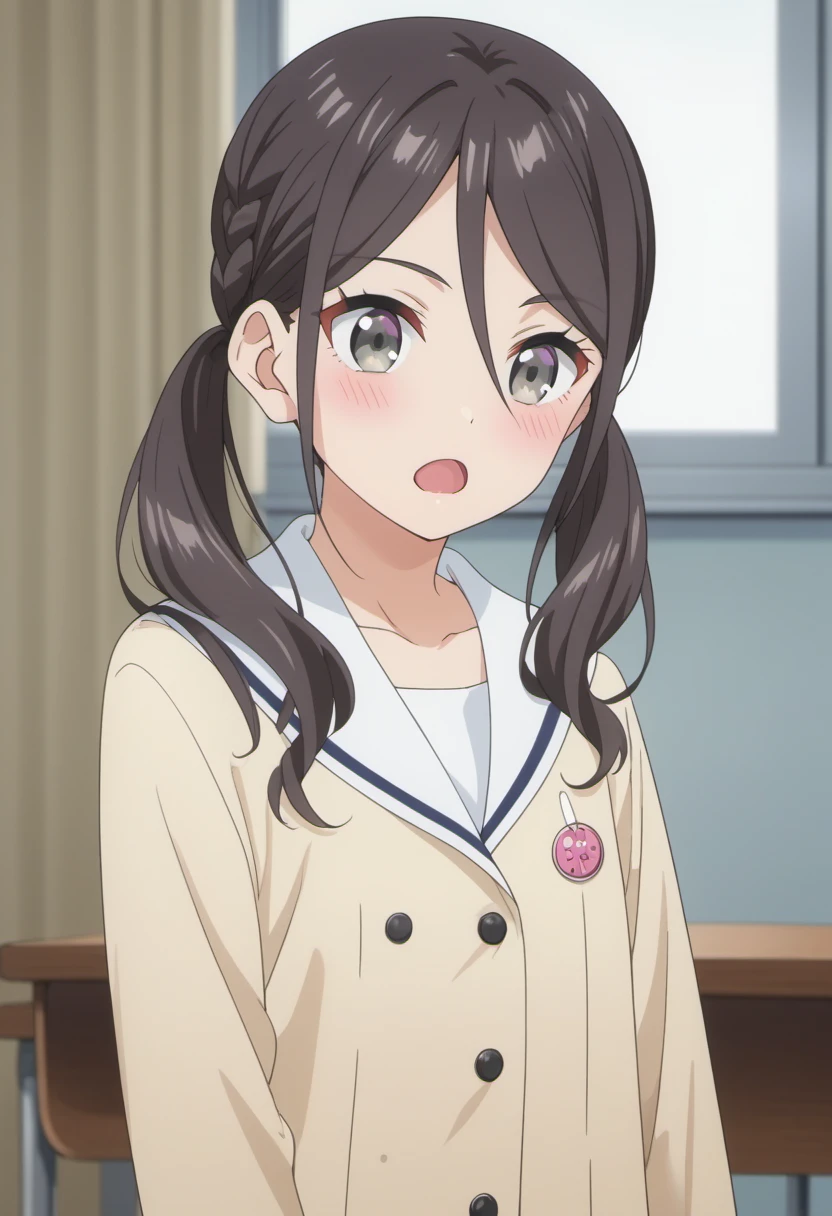 Trigger Words: naganawa yuna, dark brown hair, long hair, twintails, grey eyes