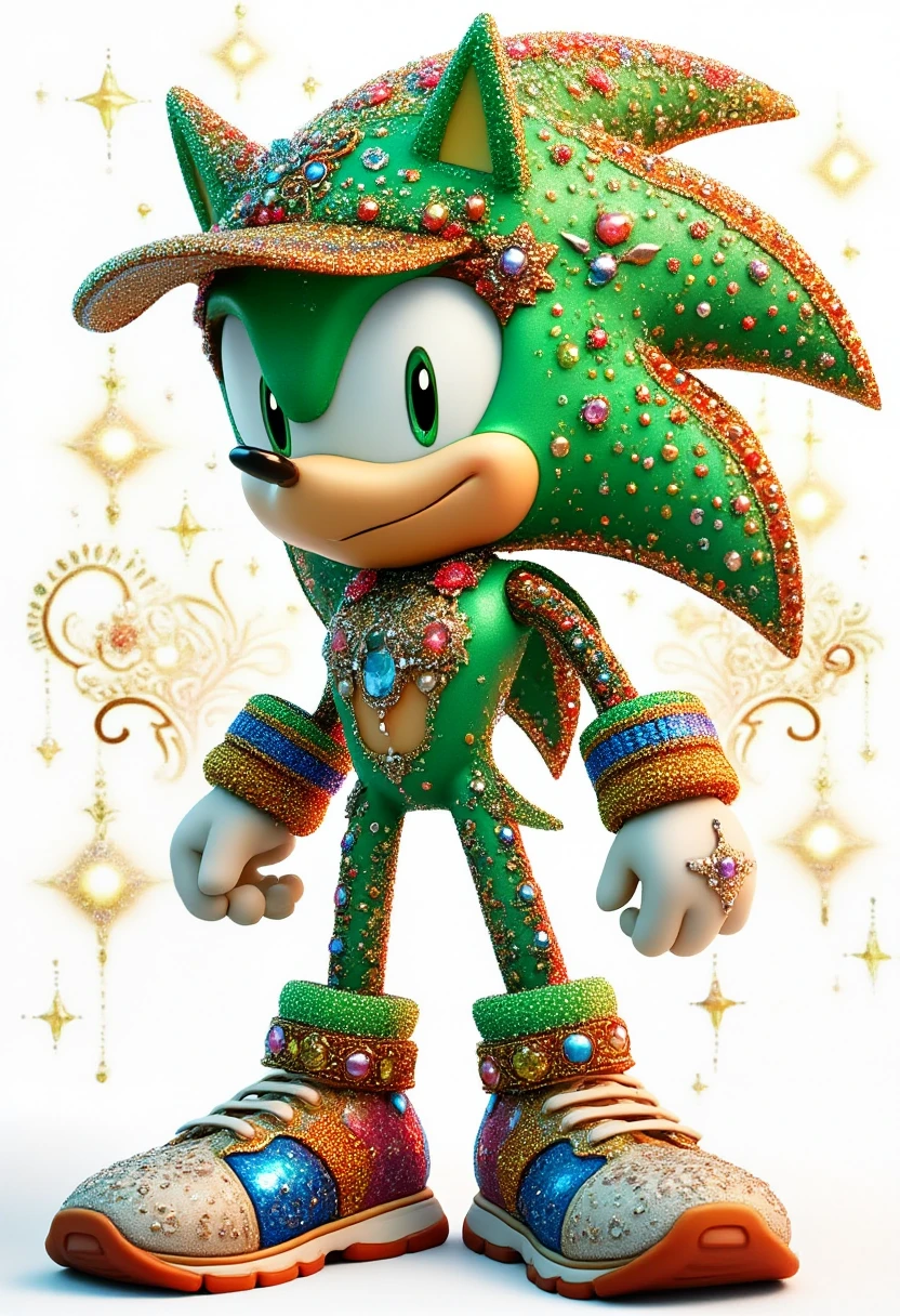 "A cartoon drawing of sonic the hedgehog wearing green bl1ngfashion."
