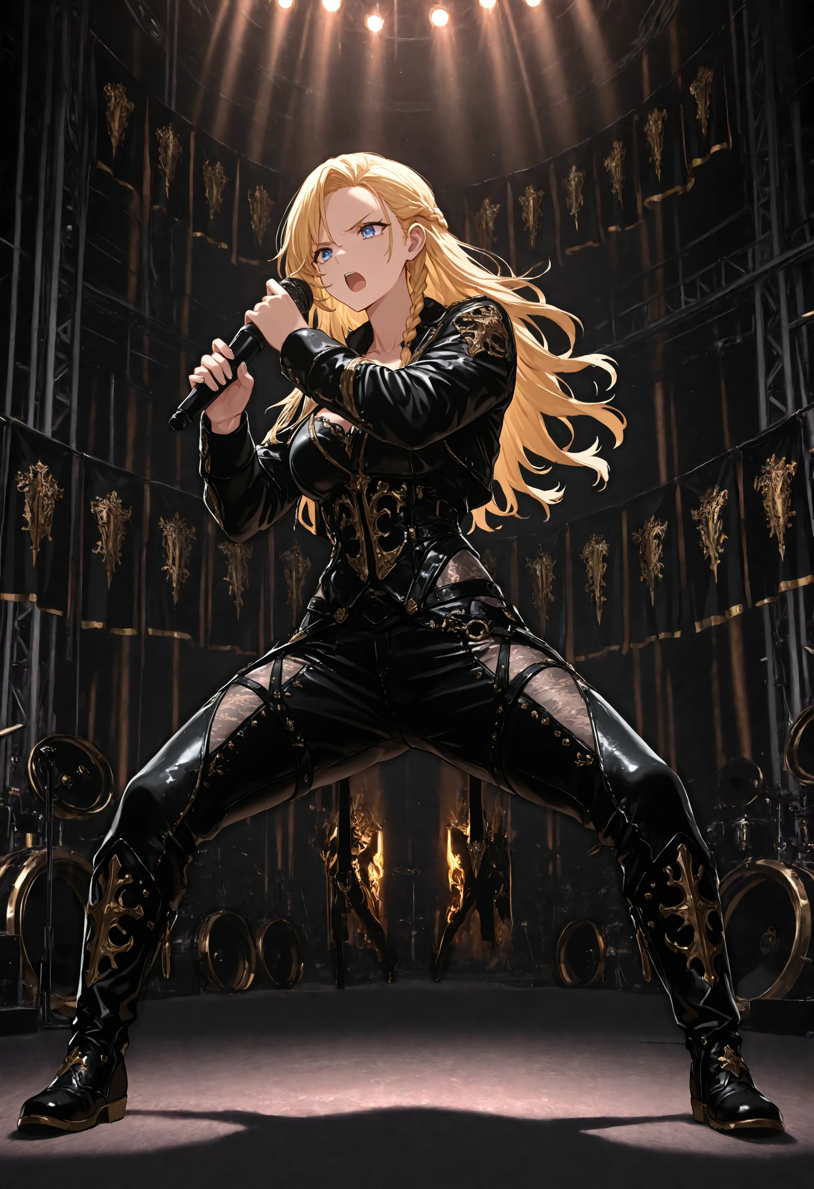 Heavy Metal Rock Godess Outfit, depending on the complexity of the prompt it helps to add color you want to each individual trigger.