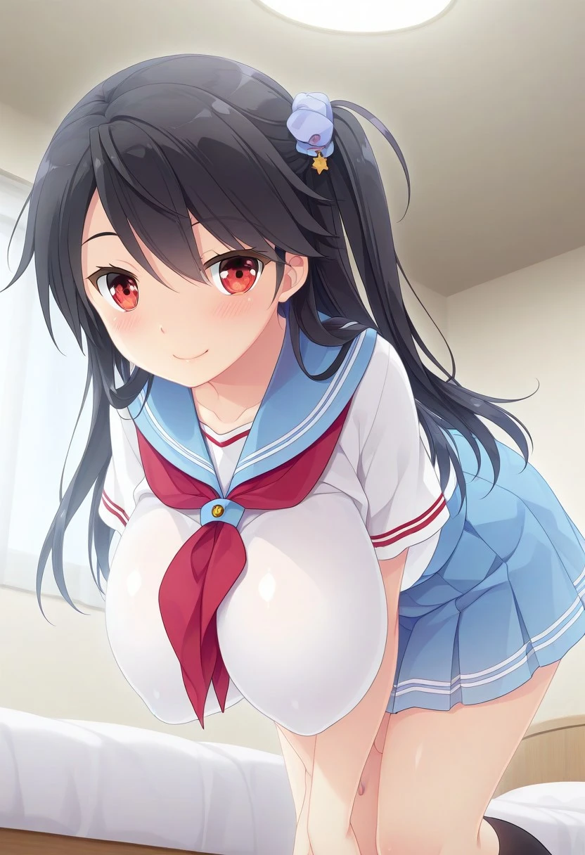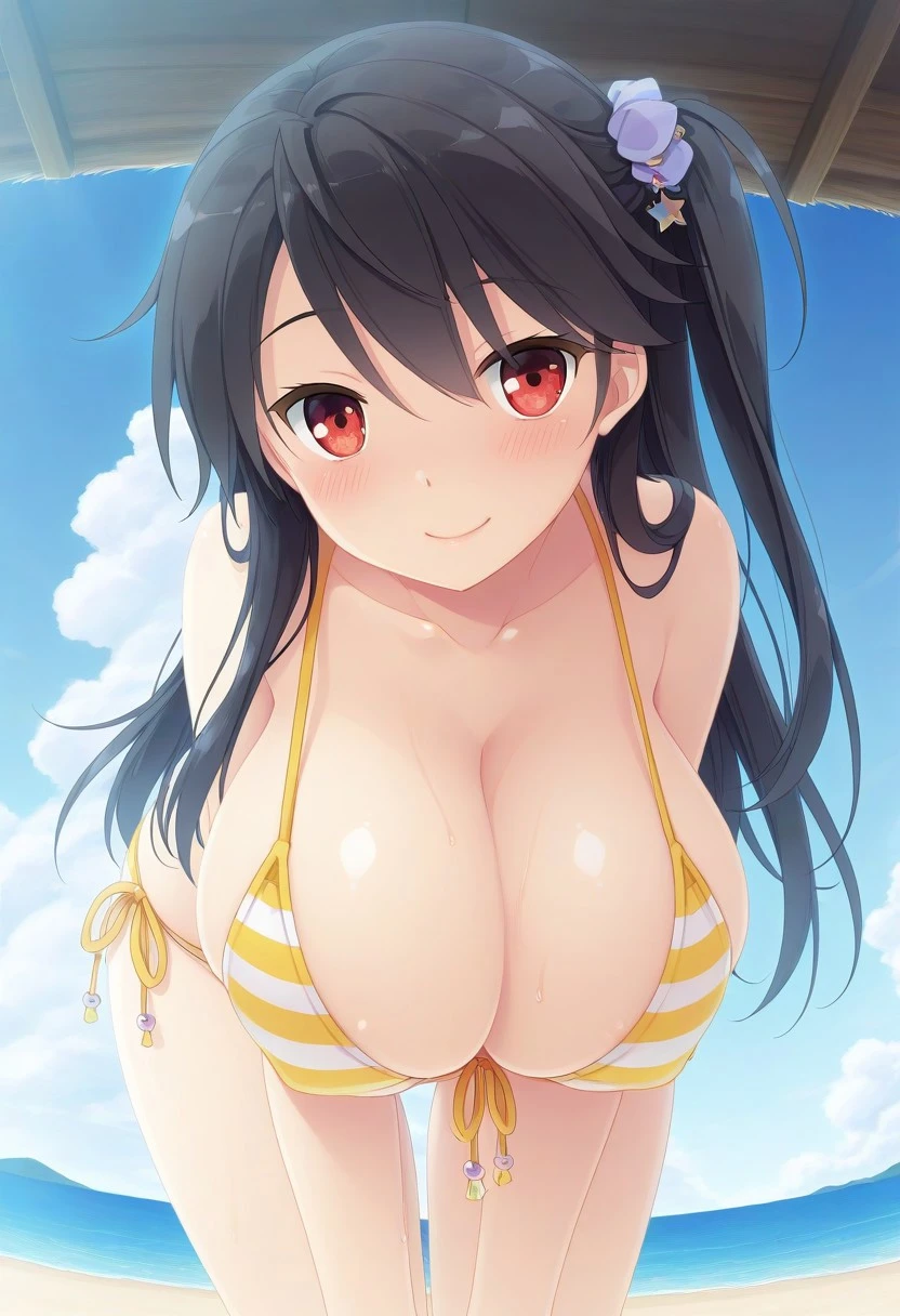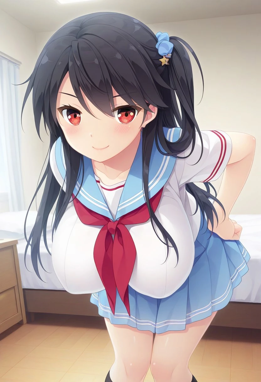 Recommend Prompt:Seika Hoshii, red eyes, black hair, long hair, hair ornament, one side up,