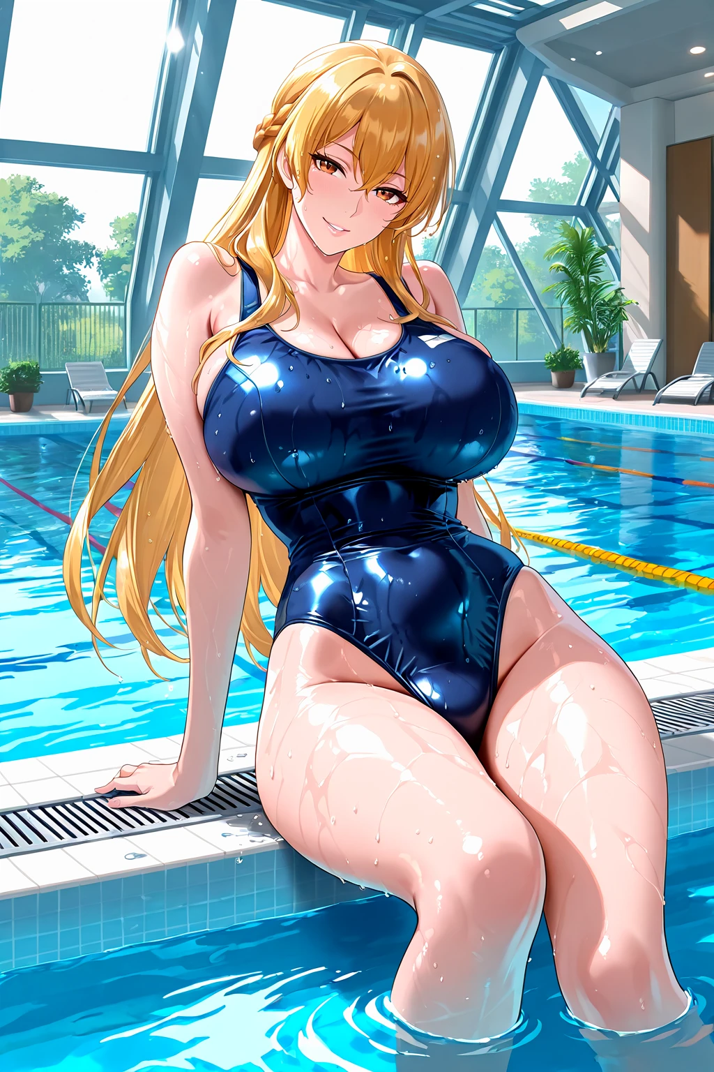 sumucheng, brown eyes, long hair, blonde hair, french braid, pink jacket, fur trim, white sweater