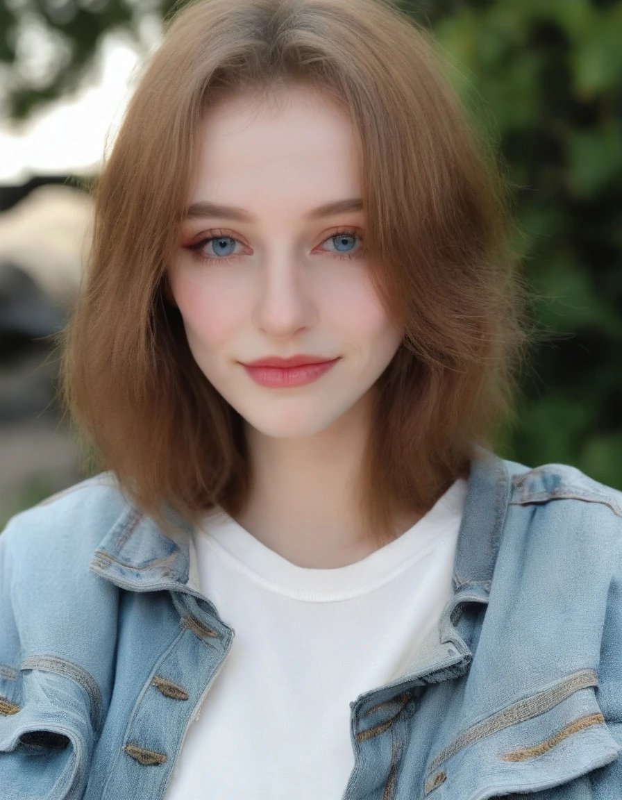 Example Prompt:1girl, solo, realistic, blonde hair, blue eyes, denim jacket, midriff, standing outdoors, soft daylight, natural makeup, parted lips, subtle smile, intricate details