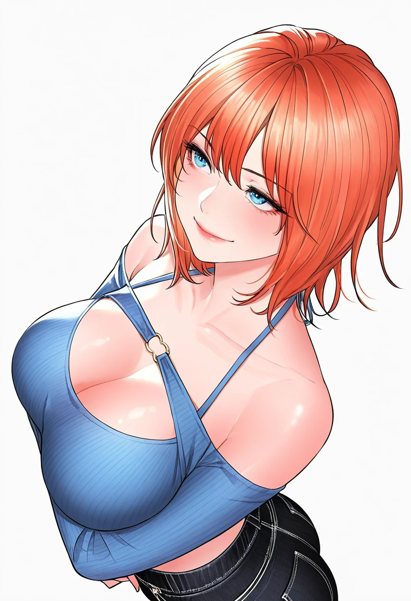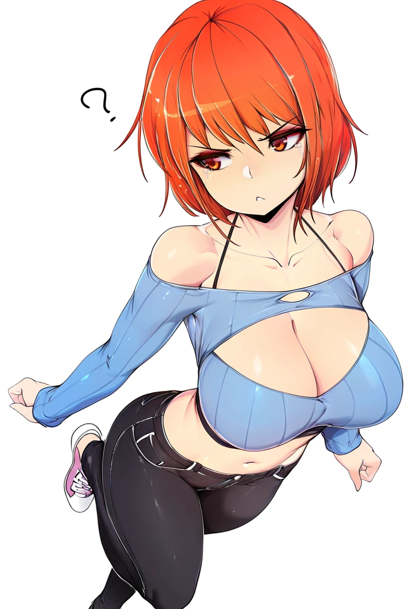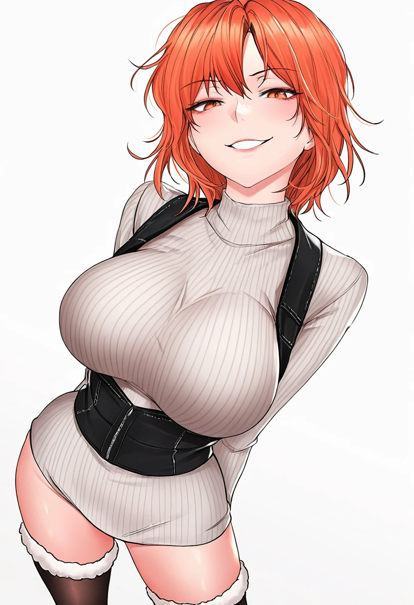 ruri_cnr, 1girl,orange hair, short hair, large breasts, 👗Default Outfit
