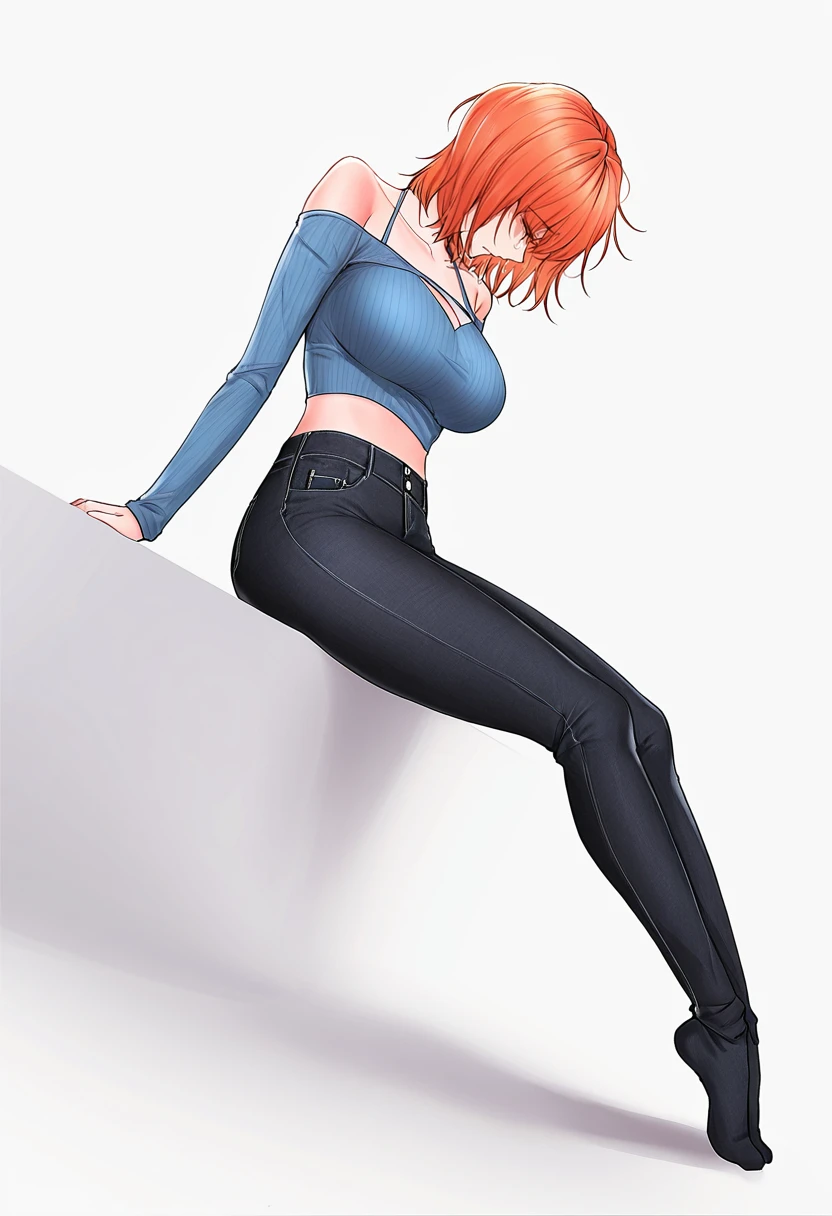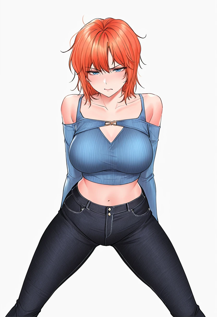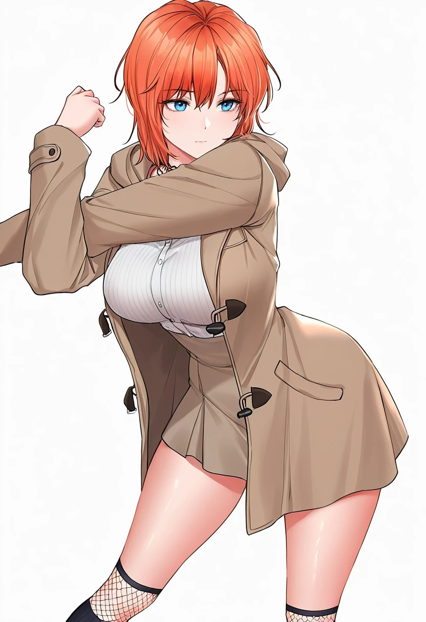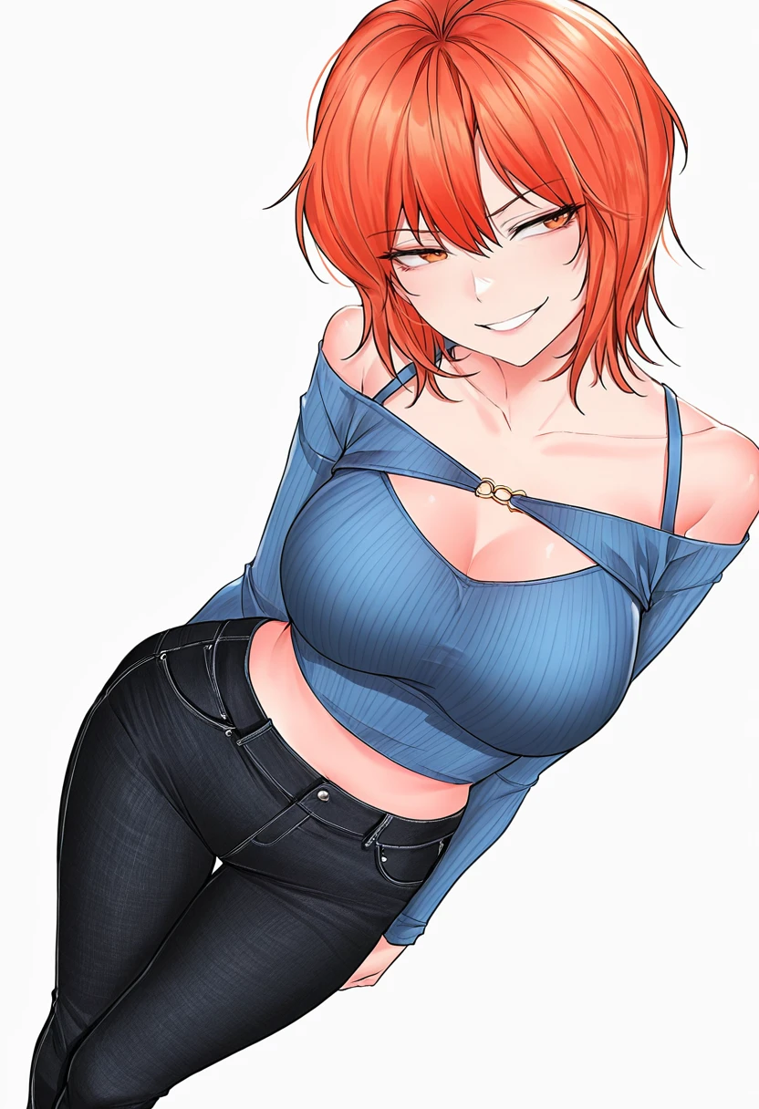 ruri_cnr, 1girl,orange hair, short hair, large breasts, 👗Default Outfit