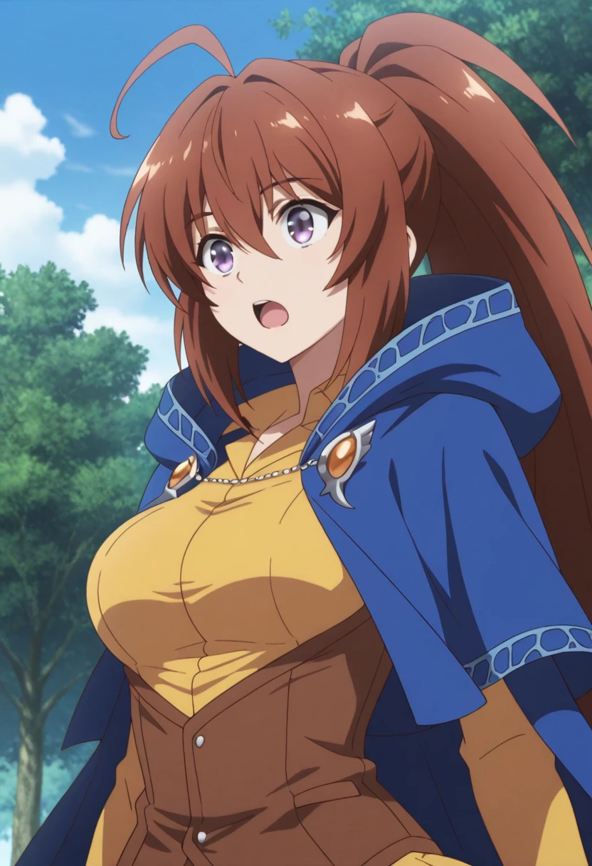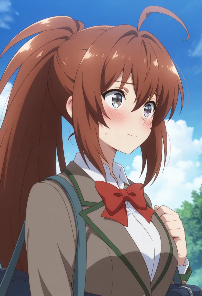 Trigger Words: azuma rin (isekai cheat magician), long hair, brown hair, ponytail, grey eyes