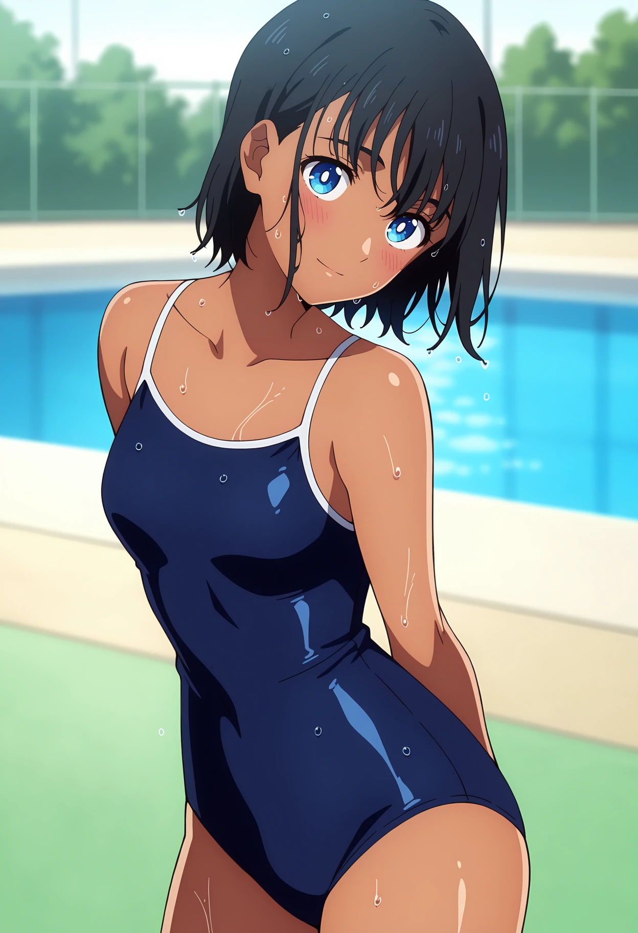 competition school swimsuit, blue one-piece swimsuit