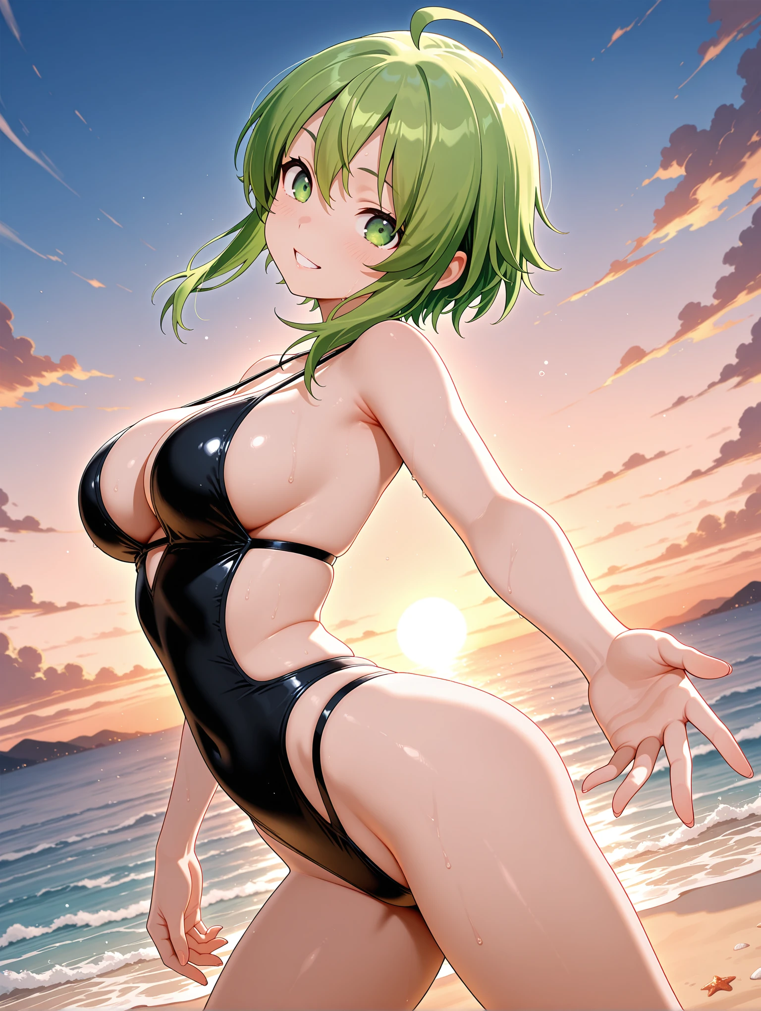 m_gu_mi,ahoge,green hair,green eyes,short hair with long locks,
