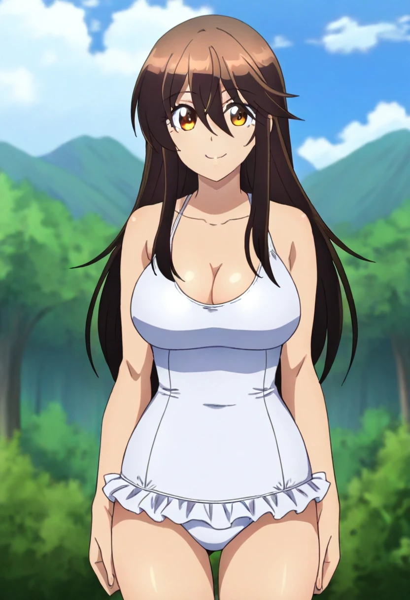 KROrib3, brown eyes, long hair, brown hair, hair between eyes