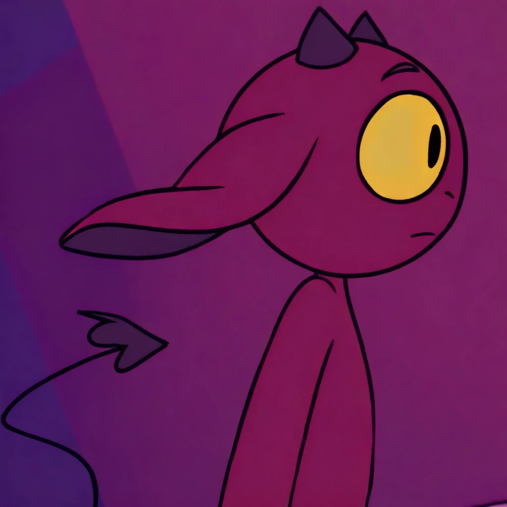 Normal: jersey the devil, 1boy, solo, demon, purple skin, goat ears, yellow sclera, slit pupils, Black pupils, demon horns, dark purple horns, demon tail, black tail, pointed tail, dark purple pointed tail
