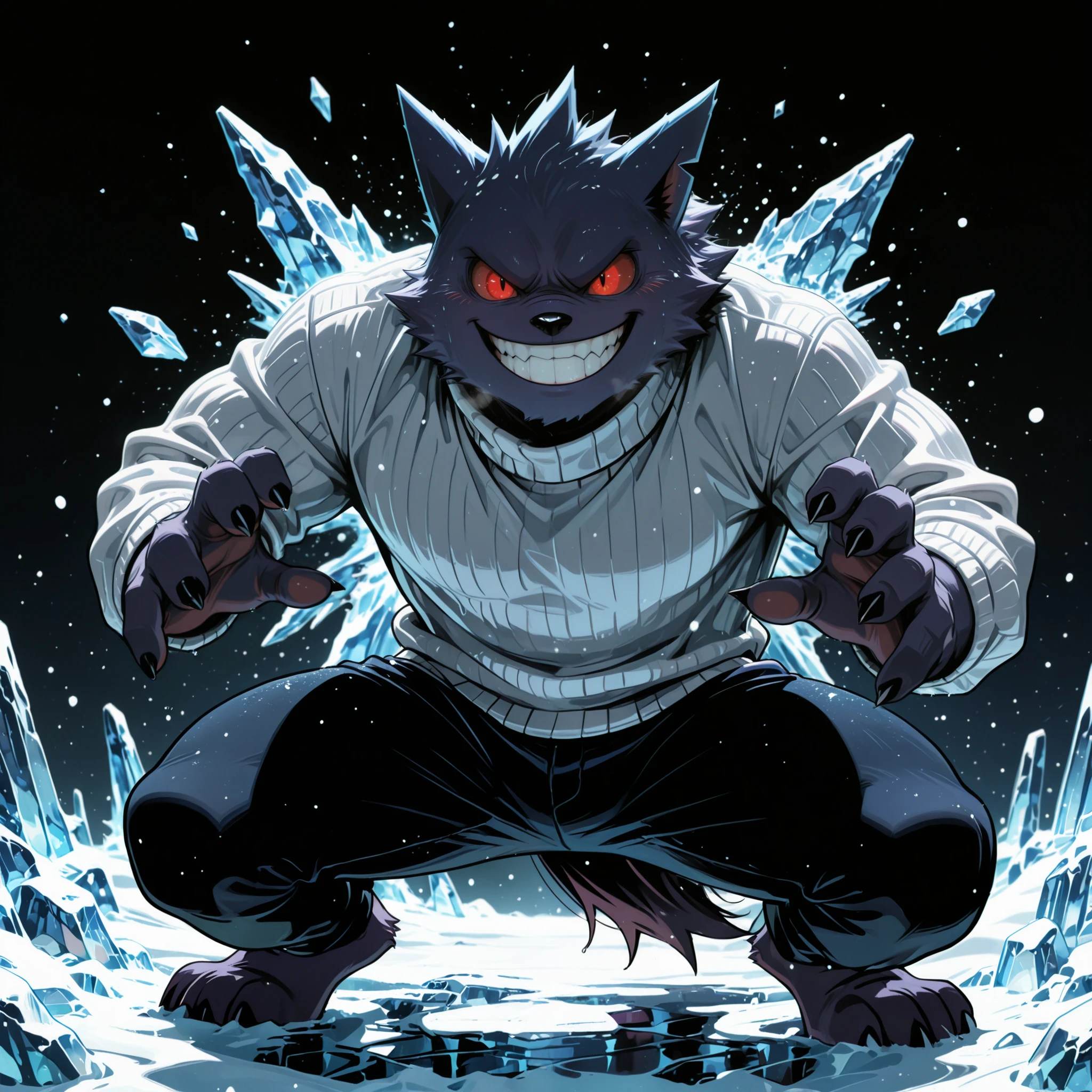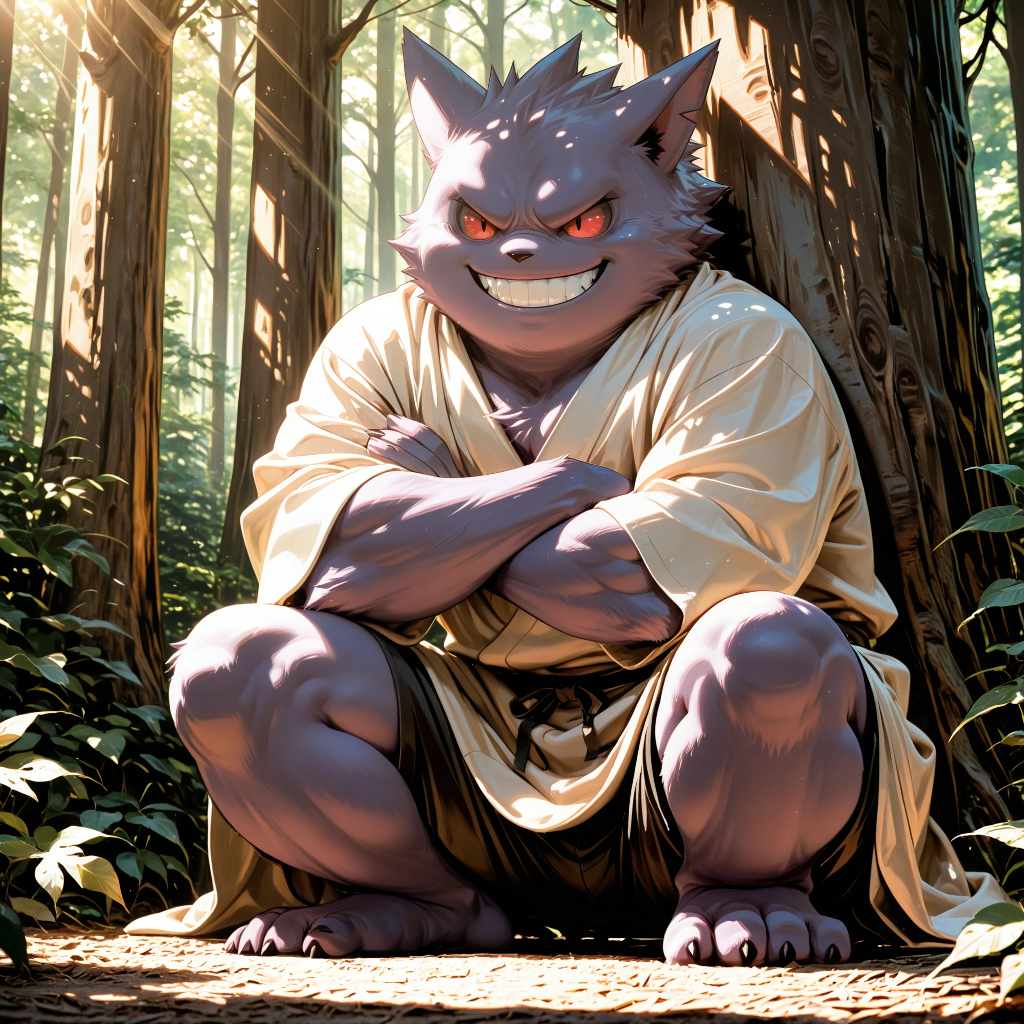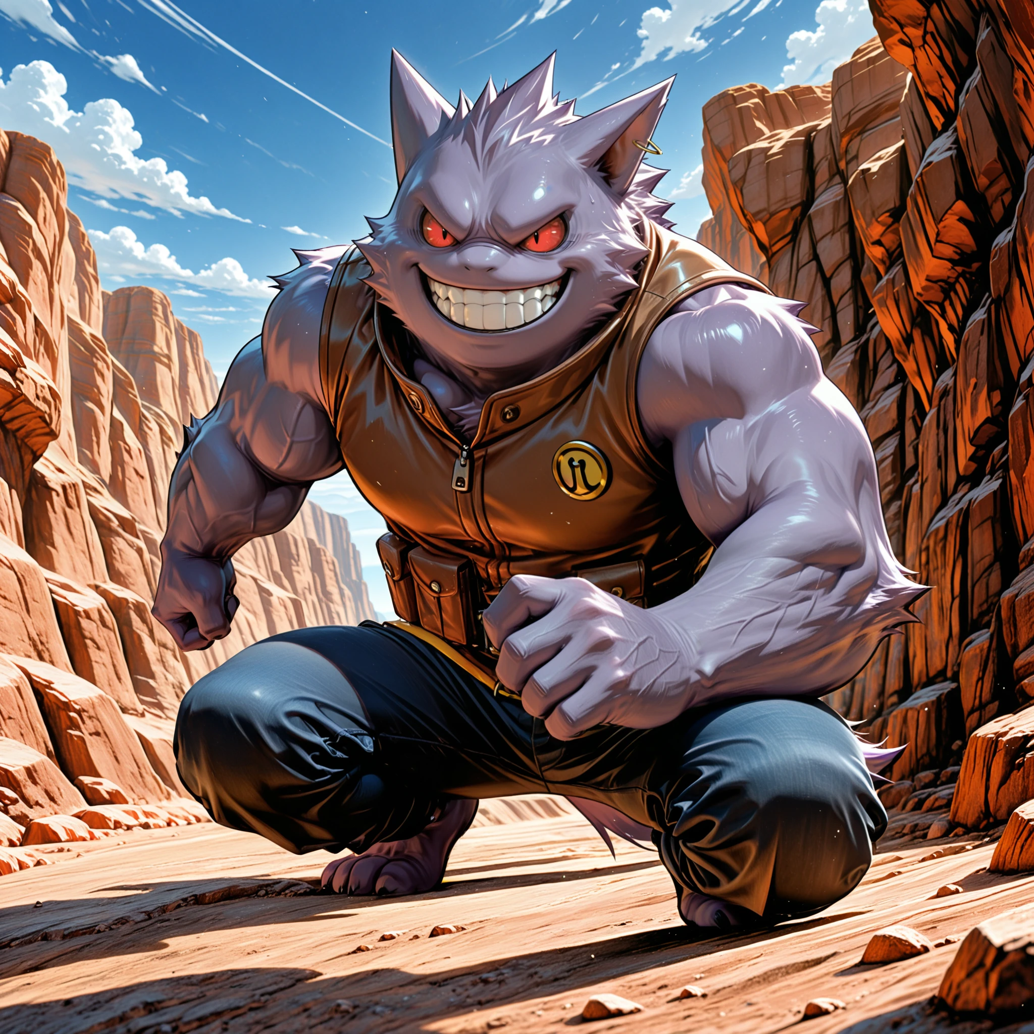 g3ngar, red eyes, light purple fur, pointy ear, sharp image, white teeth, sharp image, male, full body, round body
