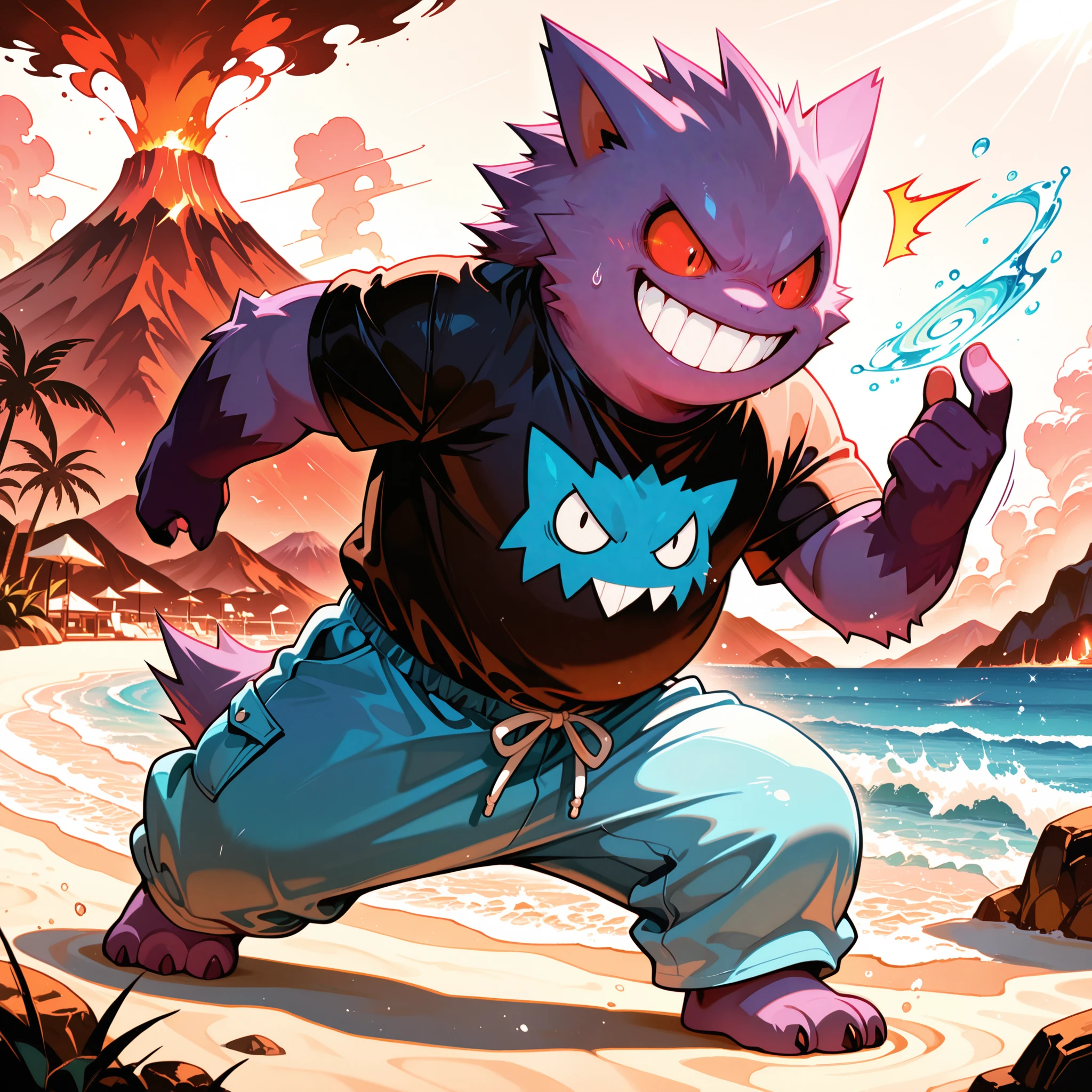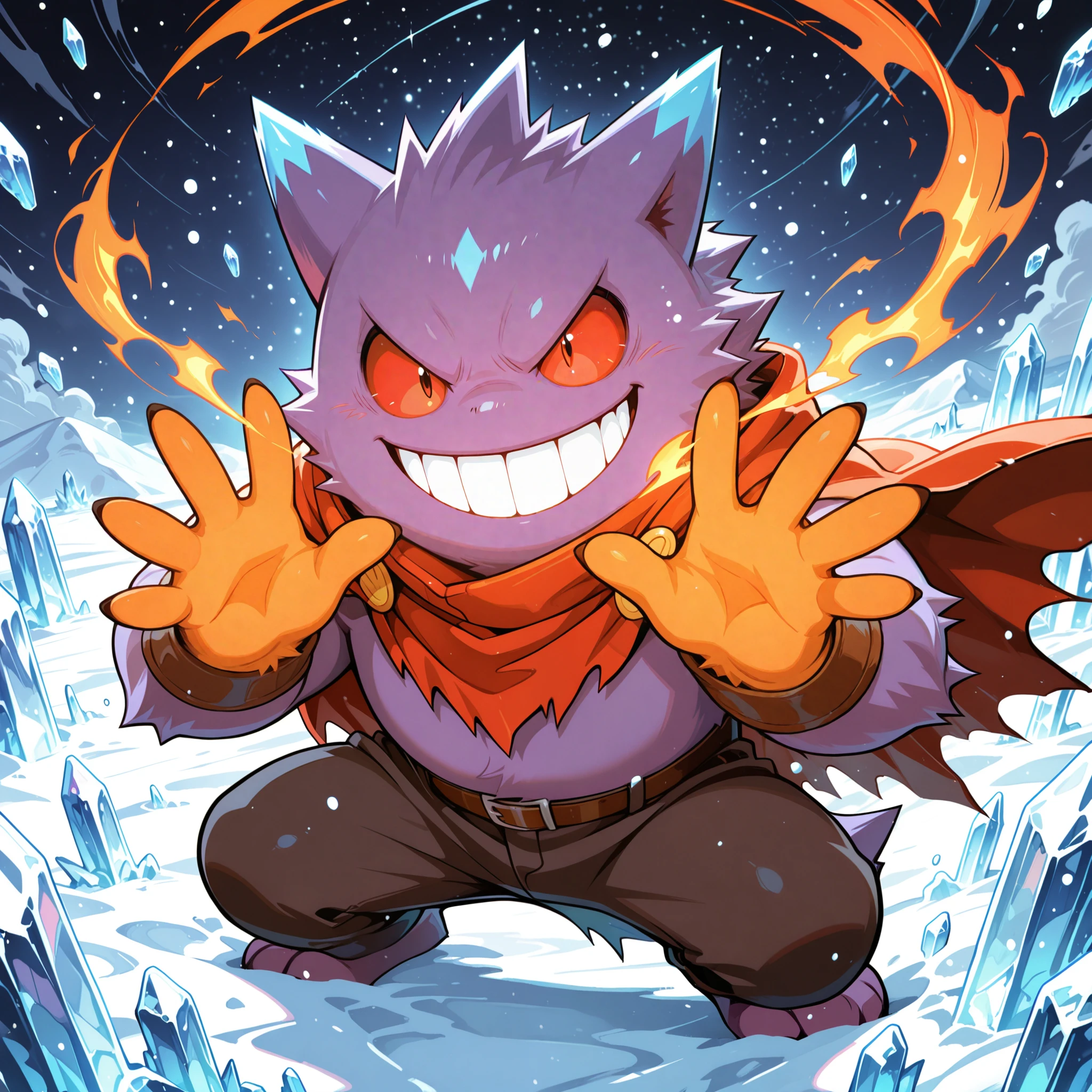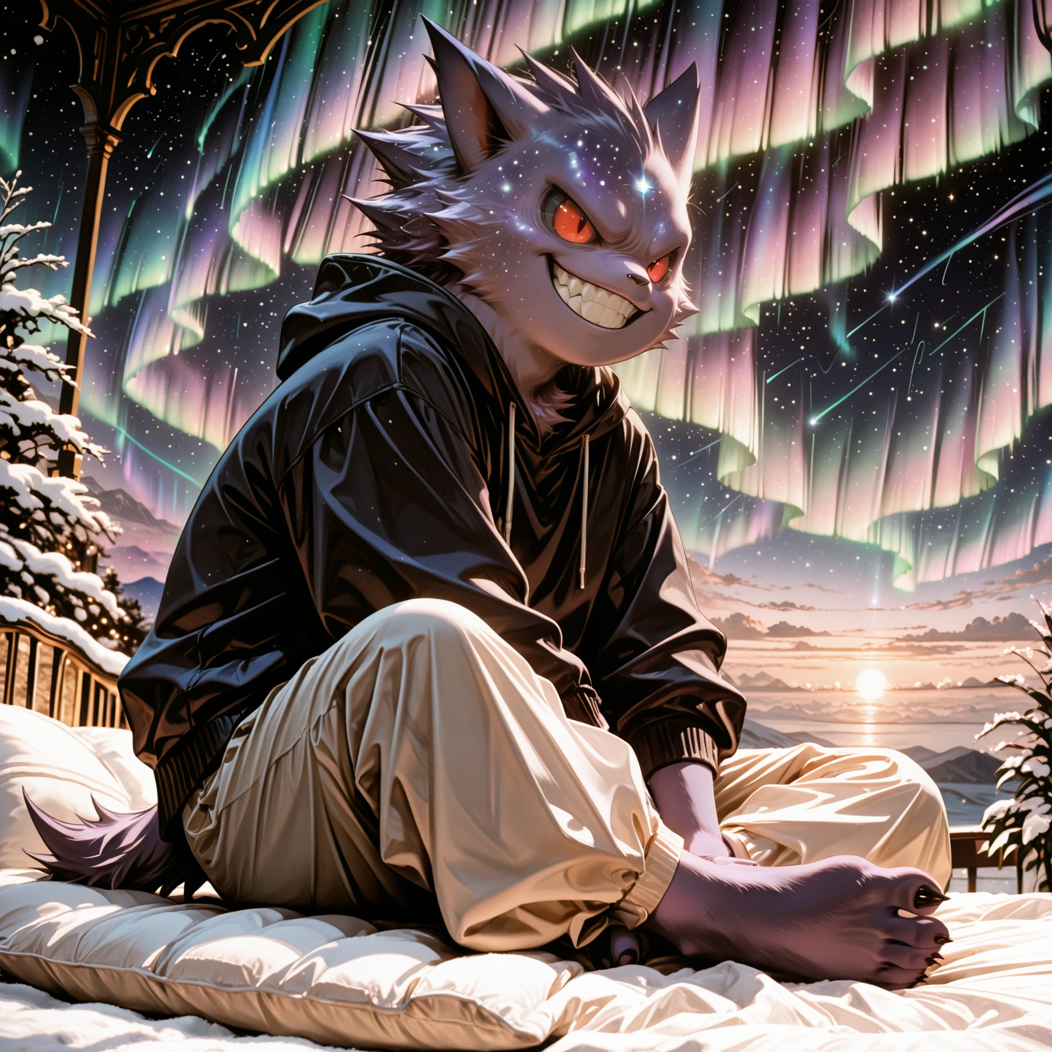 g3ngar, red eyes, light purple fur, pointy ear, sharp image, white teeth, sharp image, male, full body, round body